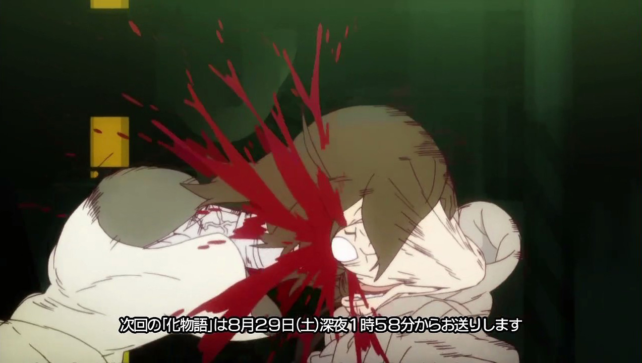 I wished Koyomi would have shown off some of his Vampire powers after being punched. Instead he just got his ass kicked.