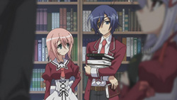 Desho?:I can’t speak for Omni, but I’m planning to continue with all the shows I’ve been covering so far. If things get hectic later on, I’ll likely drop the ones that aren’t too popular reader-wise (but continue watching them). It’s just better time spent if I don’t have that much to begin with.However, I did decide to stop coverage on Seitokai no Ichizon even though I’m still watching it. I find that I don’t have too much to say about that show each episode without sounding like I’m saying the same things every time. I’m still watching The Sacred Blacksmith as well, but coverage is left up to Omni should he choose to do it.Silver:I agree that his acceptance is a good thing. My main qualm is why he’s so quick to blame himself for it. A random note in the library is all he really has to go on right now.