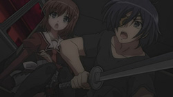 The core of the “eye-opening” story this episode revolves around the above, along with the notion that Lisette may be the Misao that was exiled from the family 70 years ago. In addition, the Black Knights hinted that they were previously human, making me wonder if they are fallen Kusakabe onmyouji or ones that turned to forbidden arts as well. This would help explain why Lisette is with them all this time (if she really is Misao) and the dreams Kakeru has of a supposed past life where he finds himself in castle rife with bodies. Evidently, the mysterious power of his right-eye was key to things then, despite its actual purpose being fairly unclear at this point.