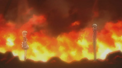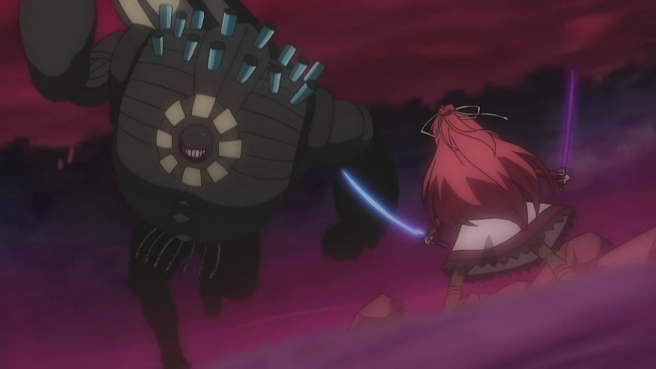 Even with the help of their new ally Yukiko, I was a bit surprised to see one of the Black Knights go down already. But as a twelve episode series (confirmed here), the pacing makes sense in retrospect. In very video game-like fashion, one of the crystal towers went down when Gula (Gluttony) did, making it seem like escaping the Red Night requires beating all the Black Knight “bosses”. As linear as that may sound, I expect there to be some twists along the way seeing as this is based on a visual novel. Speaking of the visual novel, I decided to look up its opening for comparison purposes.