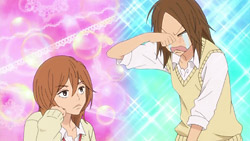 new homeroom teacher is a joker >:D … in any case… love this anime 😀 warm and fuzzy feeling… to see something that almost impossible (a popular guy “degrade” himself for the girl that no one likes) , almost too perfect, that i wudnt be suprise that kazehaya is just playing wif sawako, of course that would never be the case in an anime… especially this anime