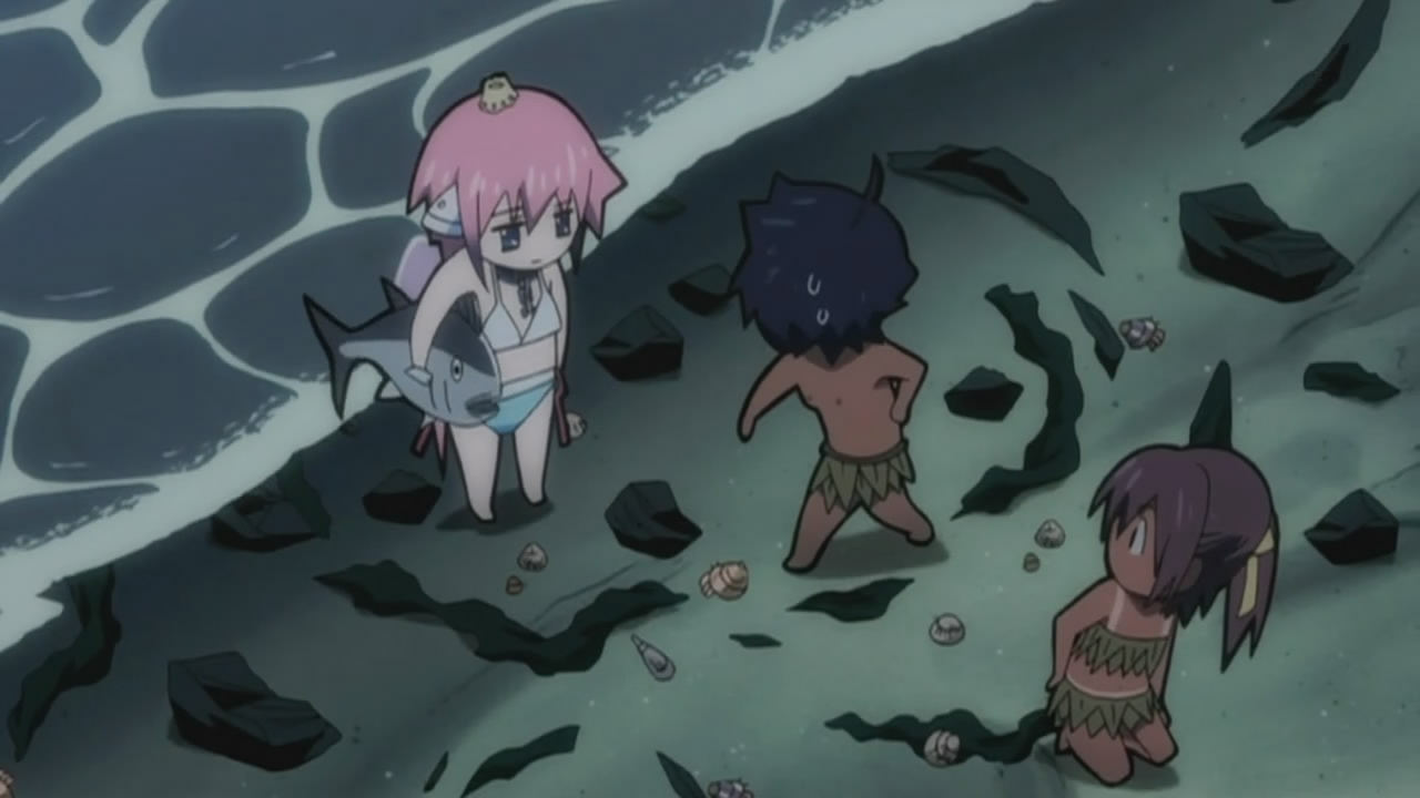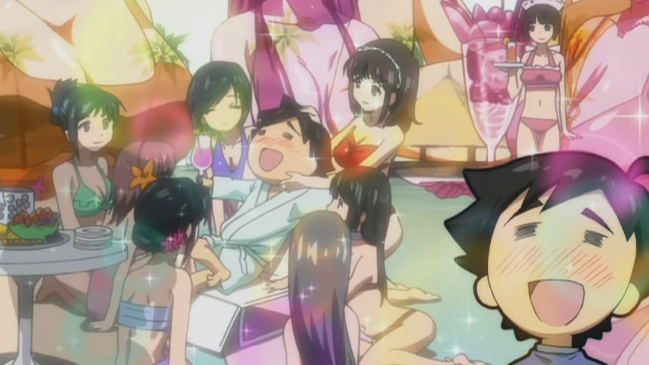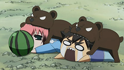 Bear wrestling, yakuza, a deserted island, bikini tanlines, seaweed monsters, and a sultry student council president. The last one is a given nowadays, but you don’t see the others a whole lot, especially not all in the same episode.