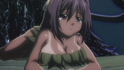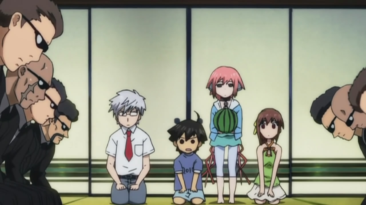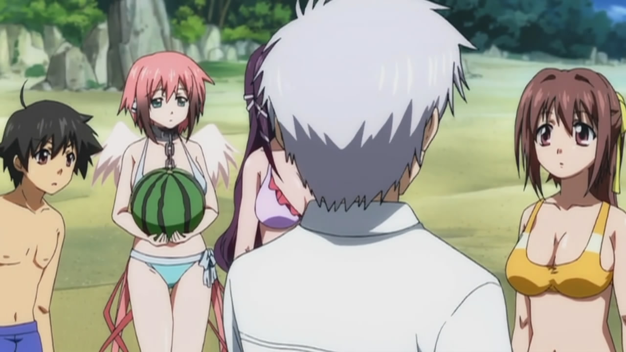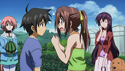 Despite the drastic change of scenary, I didn’t find things nearly as funny this time around. It wasn’t that the delivery was off, but the fact that the humour was a lot more lighthearted. A lot of things will probably make you smirk, but not laugh until you cry. I probably laughed more than I should have for the stupid hallucinogenic mushroom scene though. Aside from that, Ikaros was cute when she saw Mikako’s father’s head as a watermelon, but kind of menacing when she was asking what they’re doing to Tomoki. Seeing as Hayami Saori can do a scary softspoken voice like that, she should definitely be cast in the next horror anime adaptation. The fan-service highlight of this week had to be Mikako’s sinful body, but Sohara wasn’t too shabby herself if you like the tanline look. I was a bit disappointed about not seeing Nymph this week, but hopefully she’ll show up next time.