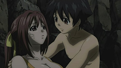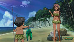 Thus, everyone is whisked off in their sleep to an uninhabited island, where Mikako and Eishirou give the pretense that they have to stay there for a while because of the whole bath incident. In order to procure some food supplies, Tomoki sends Ikaros out to the ocean for fish, while he gets messed up by coconut crabs and “magic” mushrooms. After stumbling upon giant footprints and hearing monstrous roaring, Tomoki soon discovers that him and Sohara are the only ones left on the island. Things remain like that for several days and eventually a month, but the two of them get used to living on the island. They grow amazingly close as well, to the point that Sohara (caught in the moment) is willing to have Tomoki’s kids.