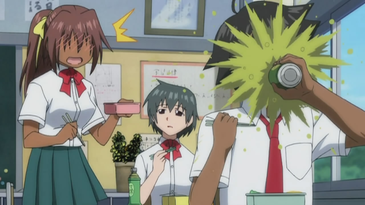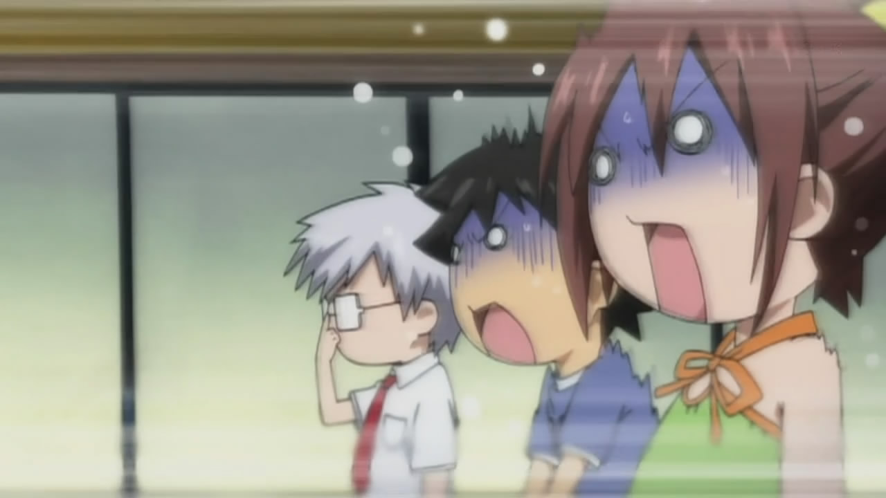 Divine & Splash divine: For me, I don’t like all those flash panty shots, “over the top” story lines, and big breast, but there are some good qualities that make it so I could enjoyed them like Akane ni Somaru, Nogizaka Haruka no Himitsu and Seitokai no Ichizon. Though there are too many things that I hate from this show. I don’t like Tomoki of the way he was voiced, or how usually there are more chibi figures then real ones, and how extremely perverted Tomoki is. I actually had high hopes for this series at first ep, but now I don’t its worth while anymore… Splash:I hear you man, about the door ending and how the mushrooms should’ve been hallucigen.I totally agree.