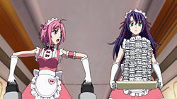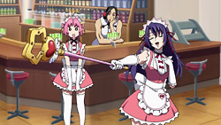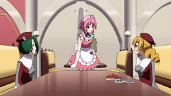This episode quickly reminded me of how inane this series can be. It had the same level of plot as last episode but without nearly as much of the funny charm, so there’s not much good I can say about it. I guess the Cardcaptor Sakura stuff wasn’t bad, and it was nice to see Q-feuille’s power and hear more of Troisienne (who’s voiced by Yukana), but that’s about it. So why am I still watching this show if it hasn’t shown many positives after three episodes? A big part of it is because I want to believe that the story will eventually take off in a good way. A show that looks this good visually can’t be this bad for too long, and divine keeps pointing out to me that there are a lot of similarities to how Sora wo Kakeru Shoujo was developed and how that turned out to be pretty good. And in fact, the preview makes next episode look a little promising because the new girls look like they could be antagonists or something, so maybe something will finally happen.