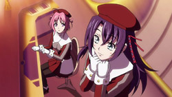 Yes, exactly what samu said. The first 8 episodes of Kiddy Grade seemed to be a brain-dead Dirty Pair clone, but then after that, it became clear that much was not what it appeared and that in fact a number of things were going on in the background of those dopey-seeming episodes that were more relevant once you had context. Related to all this was that the personas of the main characters greatly changed or at least took on new meaning once more things were revealed. That said, I still think these episodes are even more brain-dead feeling than the original first eight of Kiddy Grade. It’s going to take some pretty impressive twists that aren’t just a retread of Kiddy Grade’s gimmick to make sitting through Ascoeur’s whining worth the effort so far. The CCS parody was fun though especially in light of Sakura Tange returning to voice acting lately. 😀