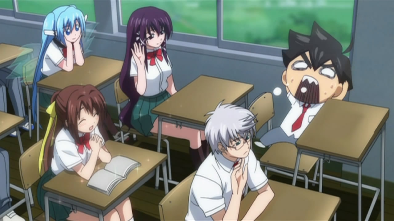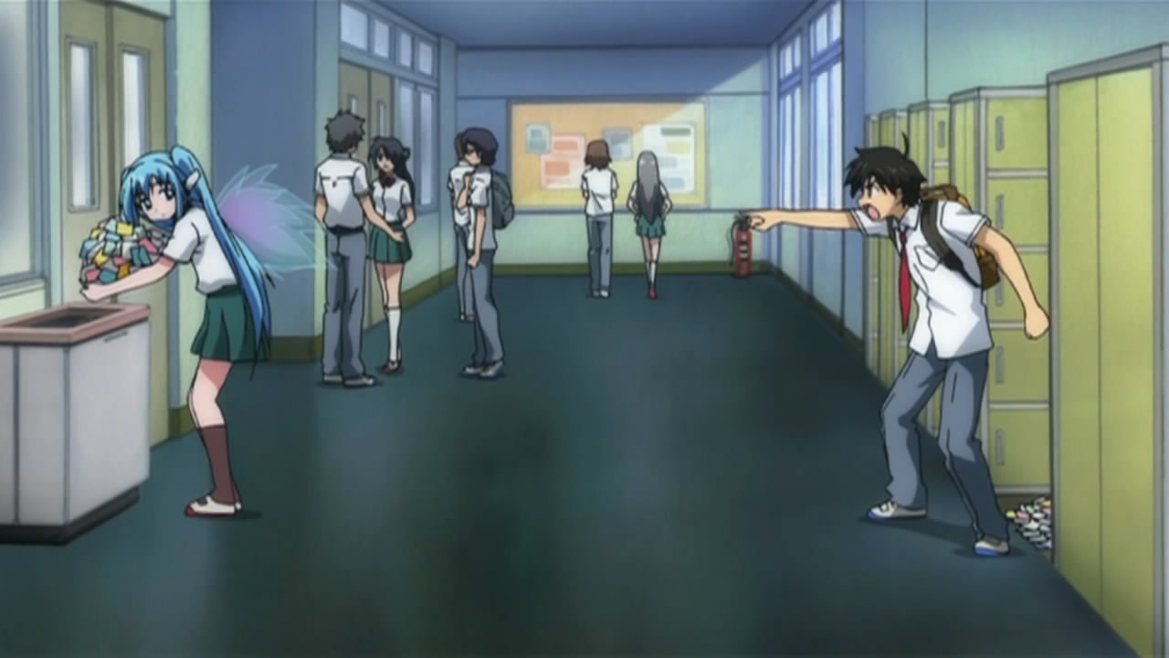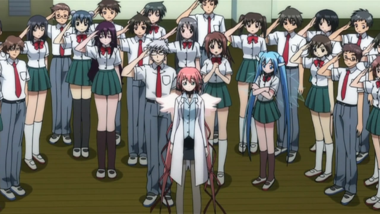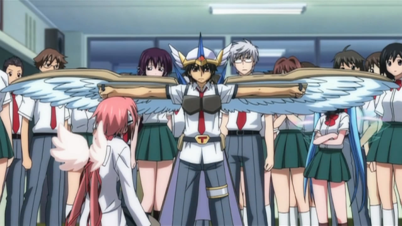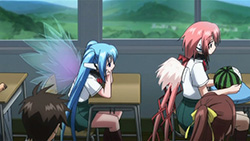 Well the transfer students turned out to be none other than Ikaros and Nymph themselves. You’d think people would be bothered about seeing two angels around their school, wings and all, but everyone’s too busy falling in love with them to even care. Talk about messed up students!