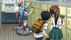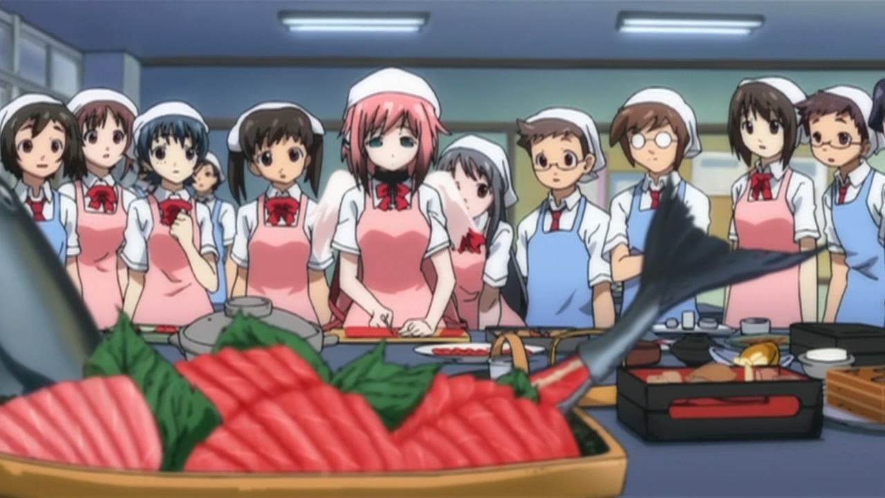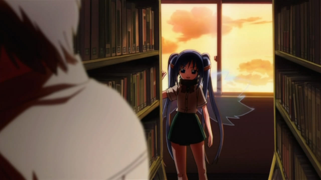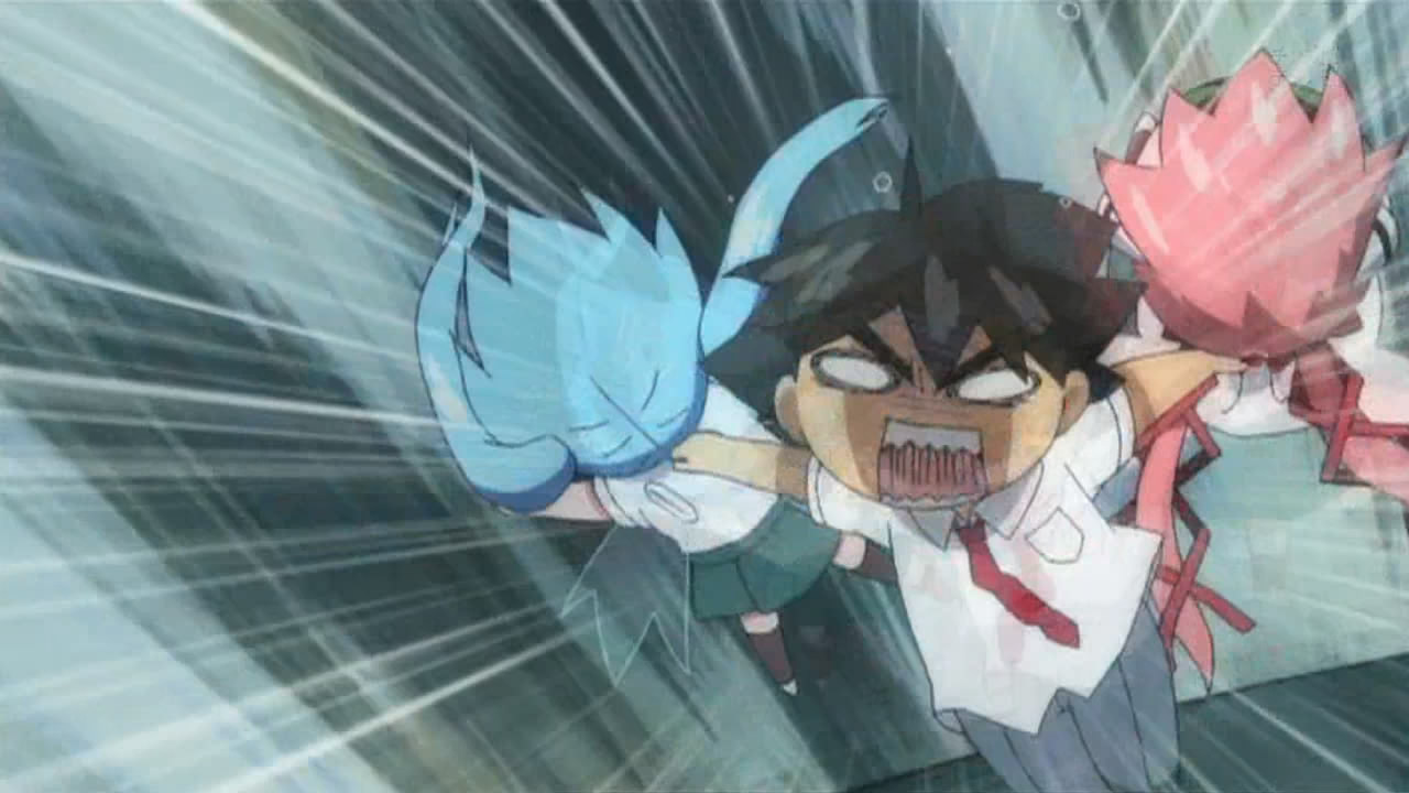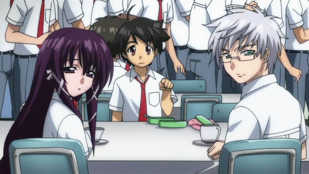 To start things off, our two Angeloids get recognized as transfer students with the help of one of Ikaros’ alpha cards and some memory manipulation on Tomoki’s teacher. This of course puts Tomoki’s peaceful days down the crapper, but he eventually caves in to the idea of giving Ikaros’ a more human-like lifestyle. Hearing this, Sohara takes it upon herself to help them get accustomed to life at school; however, the two of them prove more than capable of handling everything from studies to cooking, leaving her feeling inferior in every way. As the cute, new, top students, Ikaros and Nymph’s popularity goes through the roof and all the guys at school start giving them love letters. While Nymph’s intent on just tossing all hers in the garbage, both her and Ikaros decide to read them after Tomoki insists on taking the senders’ feelings into consideration. In Ikaros’ case, she diligently reads them all despite having no understanding of love or romance. This gets on Nymph’s nerves so she decides to scan Ikaros, revealing what she’s already suspected — most of her functions and all of her memory/emotions have protection placed on them. This leads her to believe that Ikaros is the “Uranus Queen” who rocked the Synapse before, which she later reports to her master on Synapse and promises to bring Ikaros back.