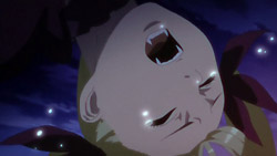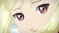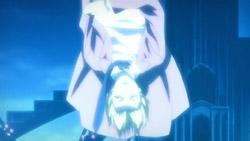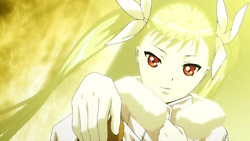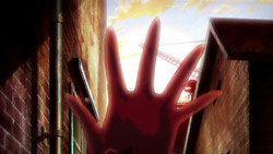 The pair are then found and attacked by two people dressed as police. Akira is able to smell that they’re enemies, and Mina defeats them both, sucking the blood of one of them in front of Akira. Afterward, Mina gets dressed again, and they make their way towards the Vampire Bund. In the process, Akira reveals that he lost his memory a year ago in an accident, and Mina ultimately decides to bid him farewell and gives him a kiss on the cheek. Before she can get very far though, she gets captured by a vampire whose true form is that of a spider, and when Akira tries to help, he gets tossed around and thrown into the ground. Hearing Mina cry out for him, Akira suddenly remembers a scene from many years ago when he had promised to protect her, and his own powers activate. He transforms into a werewolf and easily kills the spider, and he then grabs Mina and carries her to safety.
