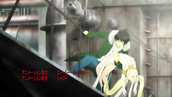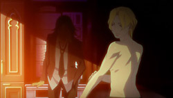 Unlike the first episode, this second episode actually had some resemblance to the manga story that it’s based on, like in the gel scene and the subsequent battle, nudity and all. However, it’s clear that SHAFT is still taking a lot of creative license in adapting it, apparently for good reason. I thought the whole lost-memory-due-to-an-accident thing was a bit on the cliche side, and I don’t like how they’ve made the series feel very monster-of-the-week so far. The broadcast quality isn’t so great either, and I’m not a fan of their use of the blur effect during action scenes. On the other hand, the general direction of the story is a little more promising now because it is closer to what I enjoyed from the manga. The difference is that they appear to be emphasizing the relationship between Akira and Mina a bit more here and the political aspects a bit less. It’s too early to say if that’s a good decision or even if it’ll stay true for the rest of the series, but it’ll be telling to see how or if they try to develop the love triangle.
