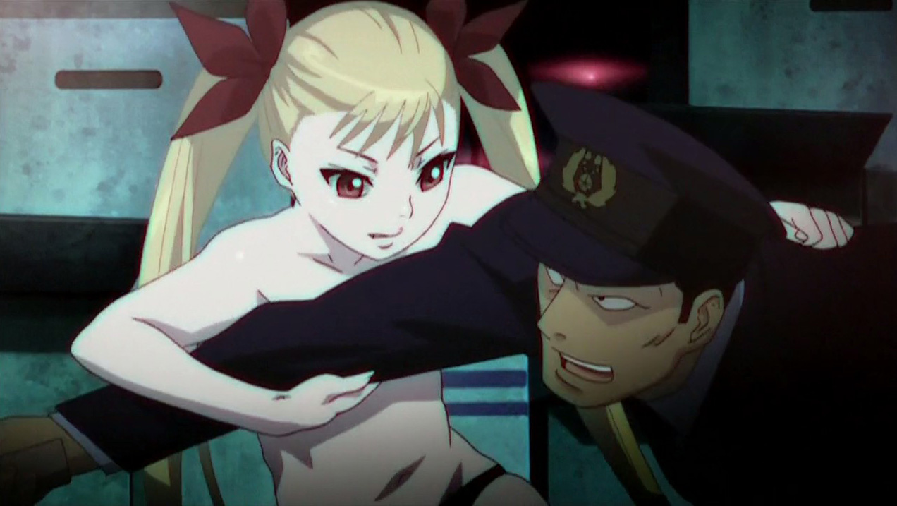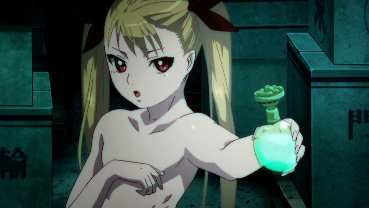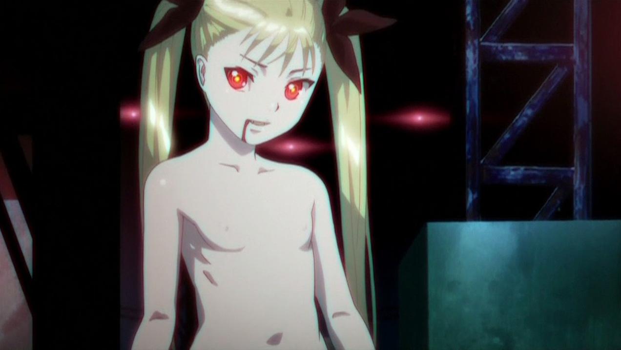 Kaburagi Akira is a seemingly normal high school student at the time that Mina Tepes creates the Vampire Bund. He’s taken care of by his friend Saegusa Yuki and isn’t too interested in the vampire stuff. This changes when he comes across a young girl following him, causing him to experience some confusing and painful flashbacks. The girl disappears, but Akira runs into her again later that day, and this time he realizes that she’s Mina Tepes. She in turn realizes that he still doesn’t remember anything, however despite this, he instinctively protects her when they suddenly get attacked by a helicopter. The two are able to escape, but Mina then reveals that the gel that protects her from the sun is losing effectiveness. She thus leads Akira into a warehouse and has him apply the gel onto her naked body.