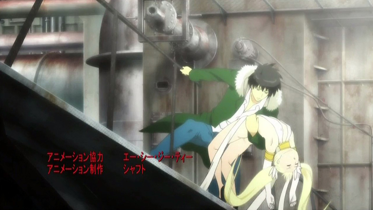 All the new* story does is make the whole thing more banal. The presentation itself just sucks in Bakemonogatari and throws in the manga’s fetish fuel. Does SHAFT need a pony trainer? If you’re going to rewrite, why not focus on the Bund and make it less of a titular animal shelter? Why focus on the ‘me and my magical girlfriend go to school’ angle and throw in some lame amnesia? In each episode they throw in at least one monkey wrench that pretty much requires them to change characters significantly or invoke facepalm. They overpowered Mina Tepes in the first episode, and then facepalmed with the monster of the week. Now they’ve had Akira play chicken with the destiny his father assigns him with magic amnesia, so either his father has to change character to explain why that would make sense or it’s more facepalm.* A new story for adapting source material that isn’t finished isn’t necessarily bad, because it has the potential to prevent the reverse 20-car pile-up of pacing that animes that adapt unfinished manga usually have. You don’t have to spend 2/3 of your episodes on slow introductory material followed by cramming the new (usually crap) plot (Soul Eater) into the last part. If you want to maintain any of the appeal of the source material, then you’ll have to either preserve the characters or preserve the theme of original work, while doing your own thing. Otherwise you end up doing the Hollywood Finds a Book thing, where you just sprinkle some names or whatever and end up with some monstrosity like Dune or I am Legend.