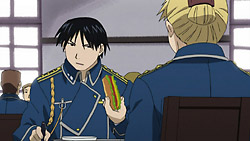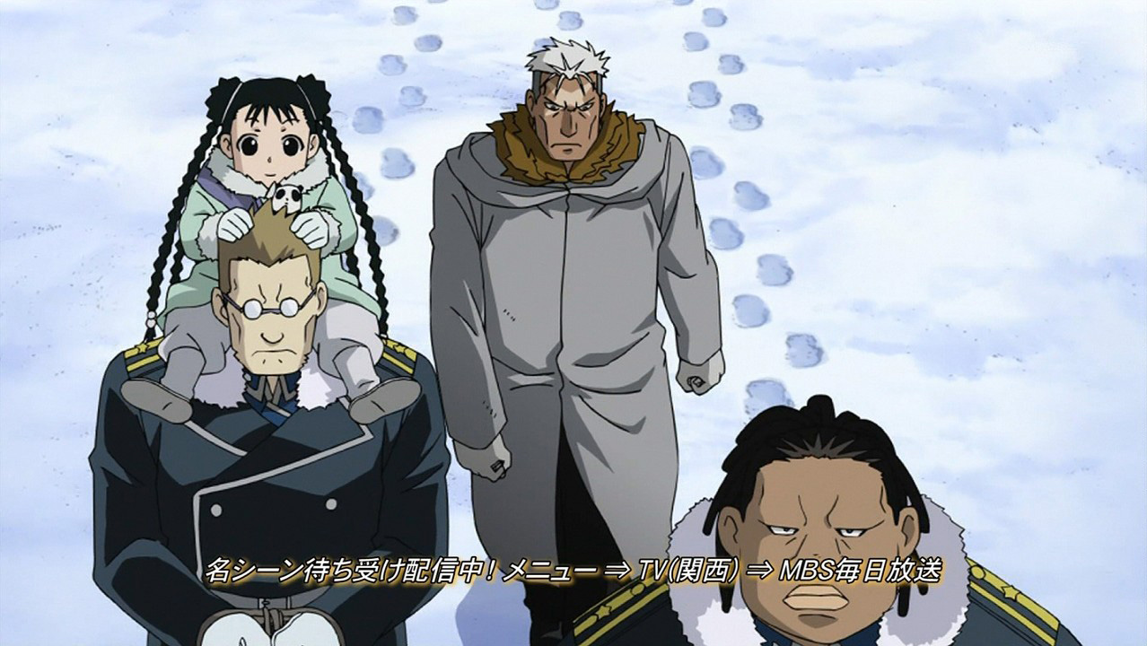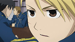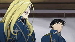This turned out to be quite a good episode – much more compelling than last week’s. For starters, the small bits of plot development in the beginning were pretty interesting, and I liked how Olivier didn’t back down against King Bradley. It was also pretty cool seeing how Hawkeye got the Selim secret across to Mustang, and I wonder what the combination of Olivier and Mustang can do in Central given what they now know.