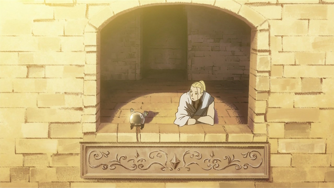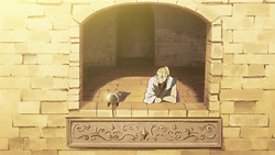 But what I really enjoyed about the episode, and what kept me on the edge of my seat, was how they then dived into what happened in the past in Xerxes and were expanding on the overarching plot. It was great to see how Hohenheim developed from Slave Number 23, how the “Little One Inside the Flask” became Father, and how these past events could parallel the future of Amestris. I loved how the episode ended too with Hohenheim helping Izumi and his declaration that he’s a Philosopher’s Stone in human form. It was a very emphatic way to finish. I guess the current ED sequence is appropriate in featuring him so prominently since it really does look like he’s getting involved in the story again. Of course, the preview indicates that next episode will be focused back on Ed, Al, and Winry, so it might still be a bit too early to say that.