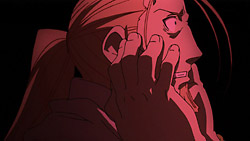 So, here we are. I’ve wanted to see this animated ever since chapter 74/75 came out, and Bones indeed delivered the best FMA:B episode so far, IMHO. Great storytelling, the best intro, big suspense, fantastic music, and this will be why I’ll be buying the dvd set. My compliments and respect for this, Bones!For once, I saw that the fansub’s translation was interesting too. ‘Hohenheim, my brother in blood’ delivers a second meaning to the Brotherhood title (as opposed to Viz’ official translation ‘Hohenheim, my blood relative’).