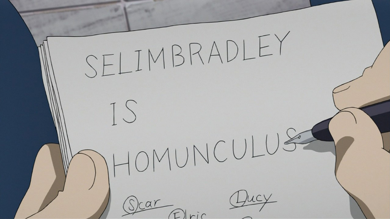 You got it Cherubium! Of course they already kind of explained that in earlier episodes…but something about FMA, even if you already knew something the more background that becomes uncovered with it the more clear your understanding becomes of that situation. Because there are so many layers to everything that is happening in FMA.