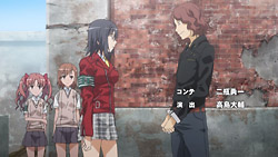 This turned out to be a decent episode, but I have a hard time calling it really good. I mean, I think the J.C.Staff crew did everything right here: I liked how they developed Konori’s past with those scenes that emphasized the color red – shades of Schindler’s List perhaps – and I can appreciate how they based the story around the theme of belonging. It was nice too to see Konori actually make good use of her power and get her own action sequence, brief though it may have been. The problem is that the episode left little impact on me, emotional or otherwise, and given the material and what they’ve been able to do in the past, this could have been more powerful. Of course, it probably doesn’t help that my frame of reference is a story arc much longer than this one, but regardless, this wasn’t as strong as I’d hoped. The one thing I did find interesting though that Hebitani was on the phone with someone about the Capacity Down system, and that person is likely related to the plot in the near future.