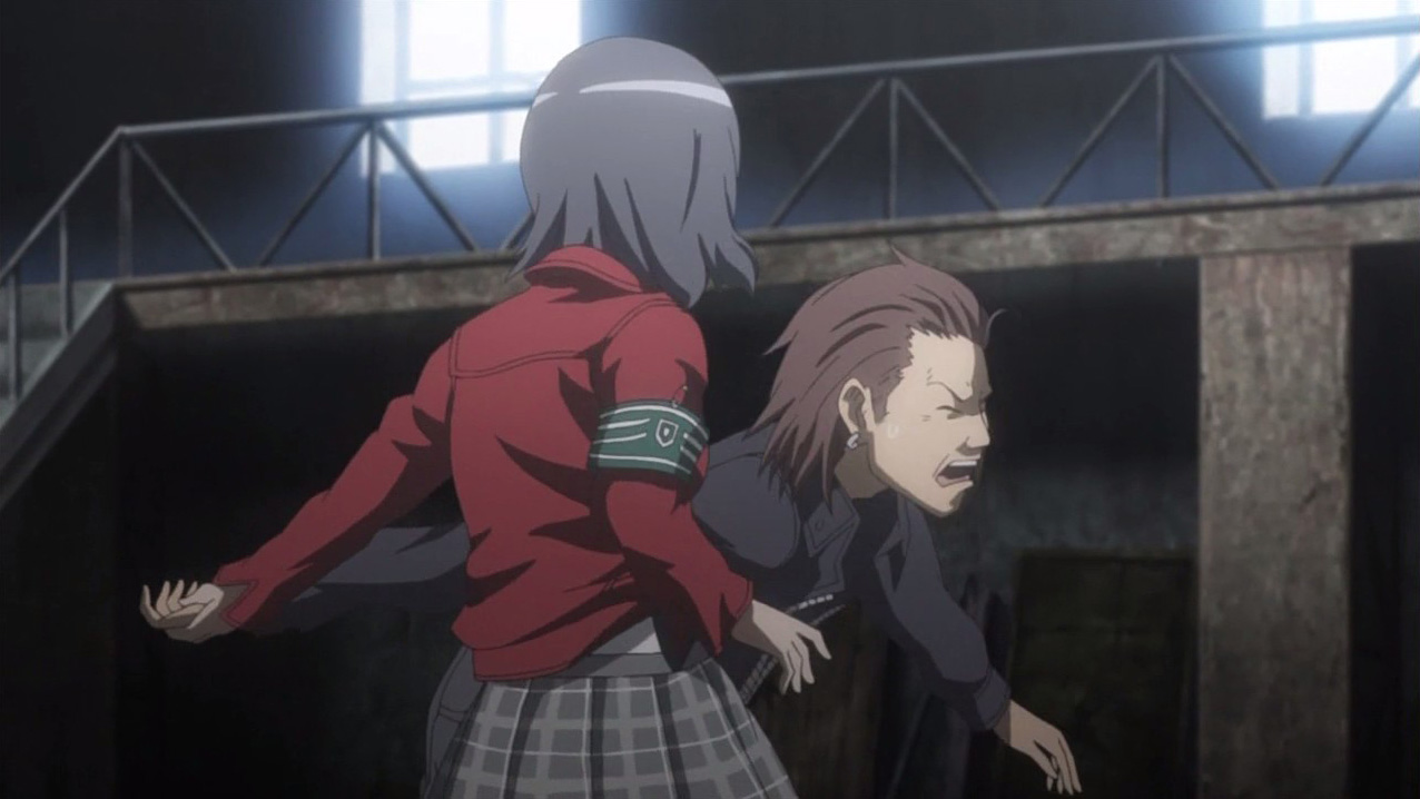 With Kurozuma clearly alive, Konori questions why he didn’t get back in touch with her, but he notices her Judgment armband and tells her that he’ll disappear soon. Konori spends the next few days away from the Judgment office, and since Mikoto and the others are curious about her relationship with Kurozuma, they go to her apartment and meet her roommate. This roommate reveals that Konori used to be a member of Big Spider and had felt that she belonged with them. She was really attached to Kurozuma, and as Mikoto learns later when she finally tracks Konori down, he had disappeared one day long ago after walking into what he knew was a trap. This along with how Kurozuma had felt that Konori didn’t truly belong there had led her to where she is now. As Mikoto is confronting Konori, Kurozuma himself appears and explains that he had been hospitalized and then detained until recently.
