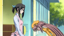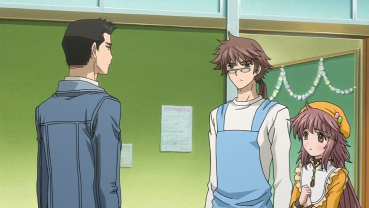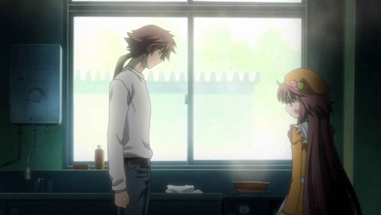 Kiyokazu then returns and takes over for Kobato, and while back at the apartment complex, Kobato goes to see Chitose. She’s not in though, so Kobato instead tells Chiho and Chise about what happened, and the two girls suggest making rice porridge for Sayaka. They teach Kobato how to do it via a picture, so Kobato goes to the nursery to try, and Kiyokazu finds her failing horribly. He scolds her about it, but that just causes her to break down in tears because she’s concerned about Sayaka dying. Kiyokazu tells her that people don’t die so easily, but Kobato believes that they can, so he comforts her. He also helps her make some proper rice porridge that Sayaka ends up enjoying. In the aftermath, Sayaka gets better, but Kobato doesn’t gain a konpeitou in her bottle. This doesn’t bother her though, and she feels better after having let out her feelings to Kiyokazu.