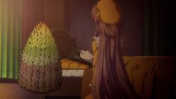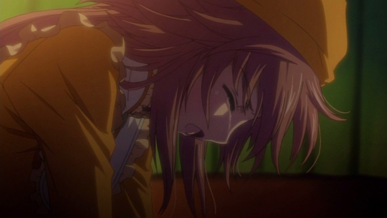 This turned out to be a much more interesting episode than I thought it’d be. The exhausted Sayaka stuff was decent (and it made me think that she should wear her hair down more because she looks much better that way), but all of the seemingly important bits were about Kobato and how she reacted to it. For once Kobato didn’t gain a konpeitou, and instead there were several hints about her past, including the fact that she doesn’t have all of her memories and that someone important to her died in some unacceptable way. It made me wonder if her goal is to go to heaven to go see or join that person, or something along those lines. The scene between her and Kiyokazu also seemed like it was a big stepping stone in their relationship. Anyway, the end of this episode and the preview for next week appear to indicate that we’re going to be seeing more of the debt storyline and the mysterious man, and hopefully that means more episodes of at least this caliber.