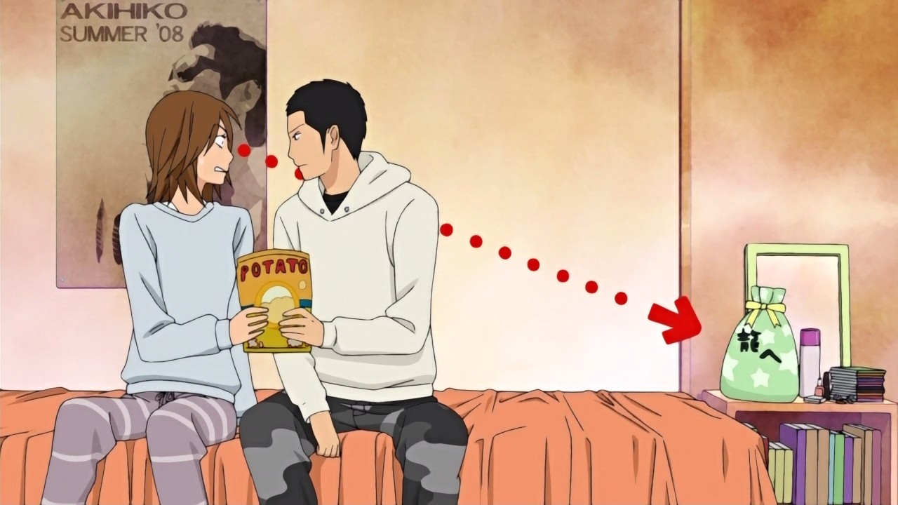 It’s now late November, and while Chizuru is looking forward to New Years, Ayane is in the middle of some problems with her boyfriend. She ends up breaking up with him, but that in turn leads to her getting slapped. In order to cheer Ayane up, Chizuru decides that they should have a sleepover. Chizuru herself meanwhile has been shopping for a birthday present for Ryuu, and she finds the perfect glove bag while out with Sawako. Given how Ryuu told her about his feelings towards Chizuru, Sawako decides to ask Chizuru if there’s anyone she likes. It turns out however that Chizuru sees Ryuu as only a sibling, and the person Chizuru actually likes is Ryuu’s older brother Tooru. What Chizuru doesn’t know, and what Ryuu finds hard to tell her, is that Tooru is coming back home the following week. When Ryuu tries to go over to her house to tell her directly, she panics because she thinks he’ll see his birthday present and kicks him out before he can say anything.