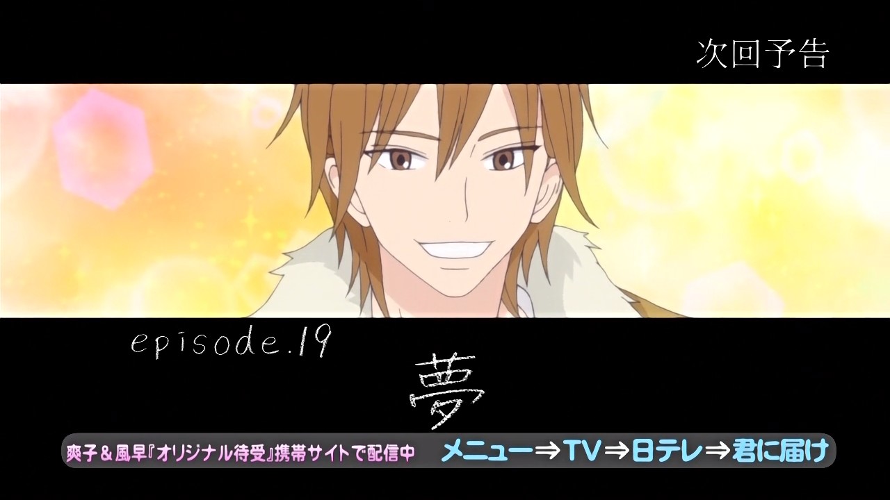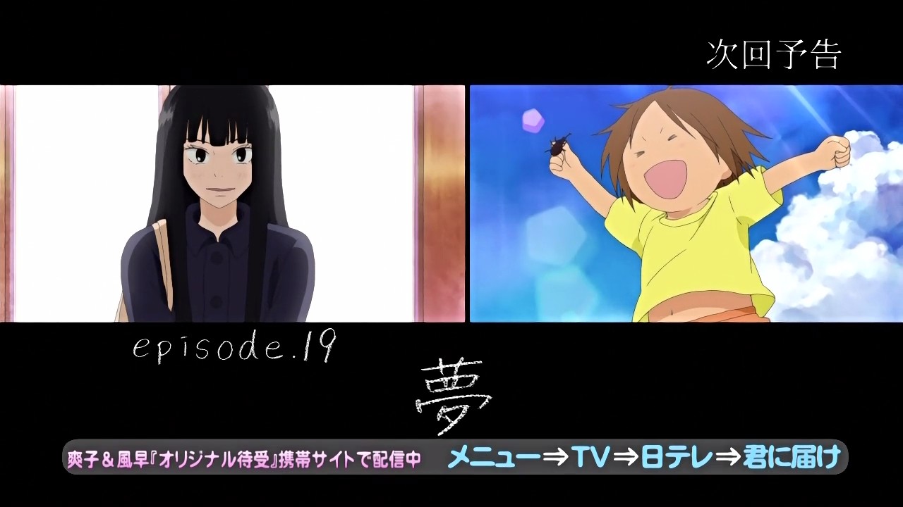 i don’t understand why are they going so fast (and skiping some side dialogue) ? i though they’ll finish this with the end of chizu arc but i must not be like that with this speed. Maybe they’ll try to finish at new years events and let the rest to season 2 (yes it MUST be a season 2 so i’m assuming there will be one^^)To manga readers who have read the latest chapter scanlated (i mean chapter 35)And so kazehaya said it ! sawako don’t seem to understand that he realy mean it and i want sooo much to see what will hapen. I wish i could read japanese to read all those raws already out but not translated yet 🙁