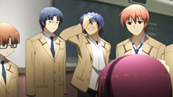 God damn, the SSS is nothing more than a bunch of school bullies with the way Yuri runs her so-called operations. This is no longer a battle against Tenshi (real name Tachibana Kanade) anymore, as it’s downright mean how they pick on her for no good reason. Of all things, they decide to take the upcoming “fierce battle” to the examination rooms by making Tenshi fail all her exams and lose respect as the student council president. Granted, it was still pretty damn hilarious though, starting with them drawing ballots to try and get the seat in front of Tenshi to perform a test paper swap when they pass their exams to the front. With Takeyama, a.k.a. Christ, drawing the lucky number and Hinata getting the nod for executing the diversion at the end of the first physics exam, Yuri and the rest of the gang’s stupidity became even more prevalent when they didn’t even no what name to put on the sabotaged exam paper. With the “Tenshi” and “Student Council President” obviously not going to fly, Otonashi was kind enough to save some of my brain cells by asking her for her name when presented with the opportunity. Naturally, a face palm is in order when he returns only to find out that Yuri knew that at one point but didn’t care to remember.