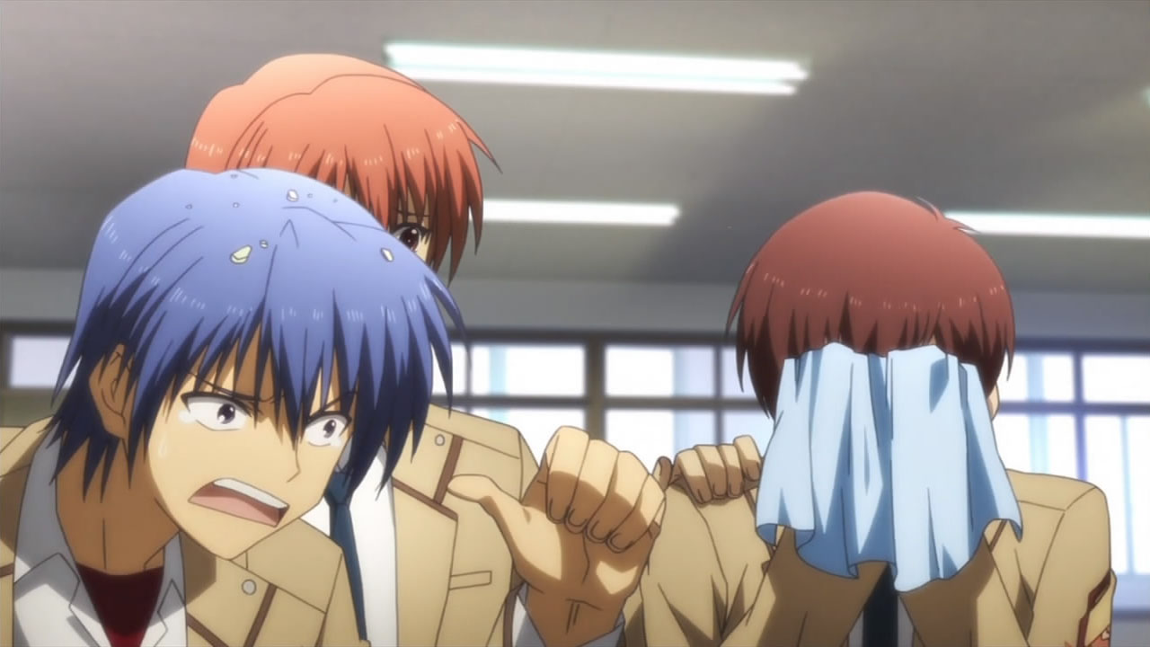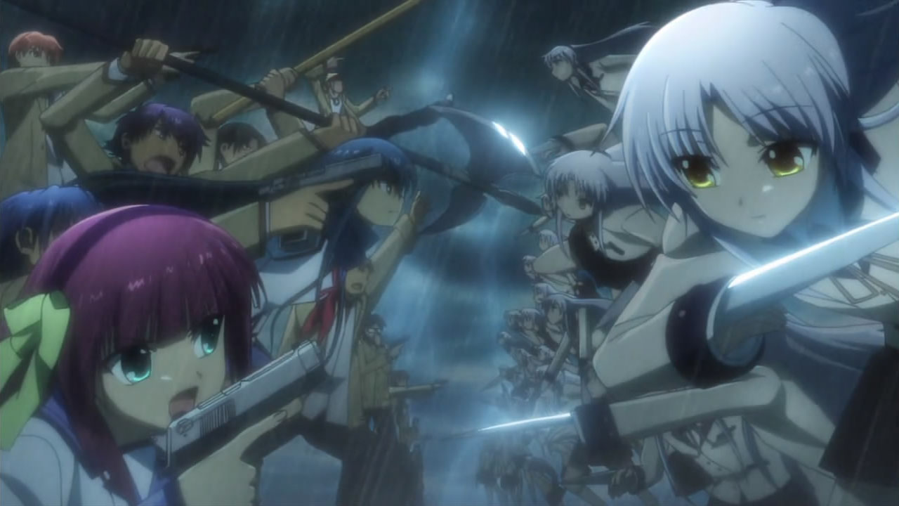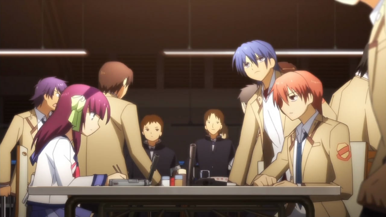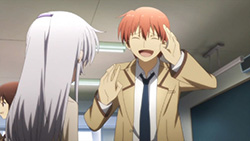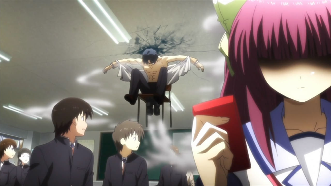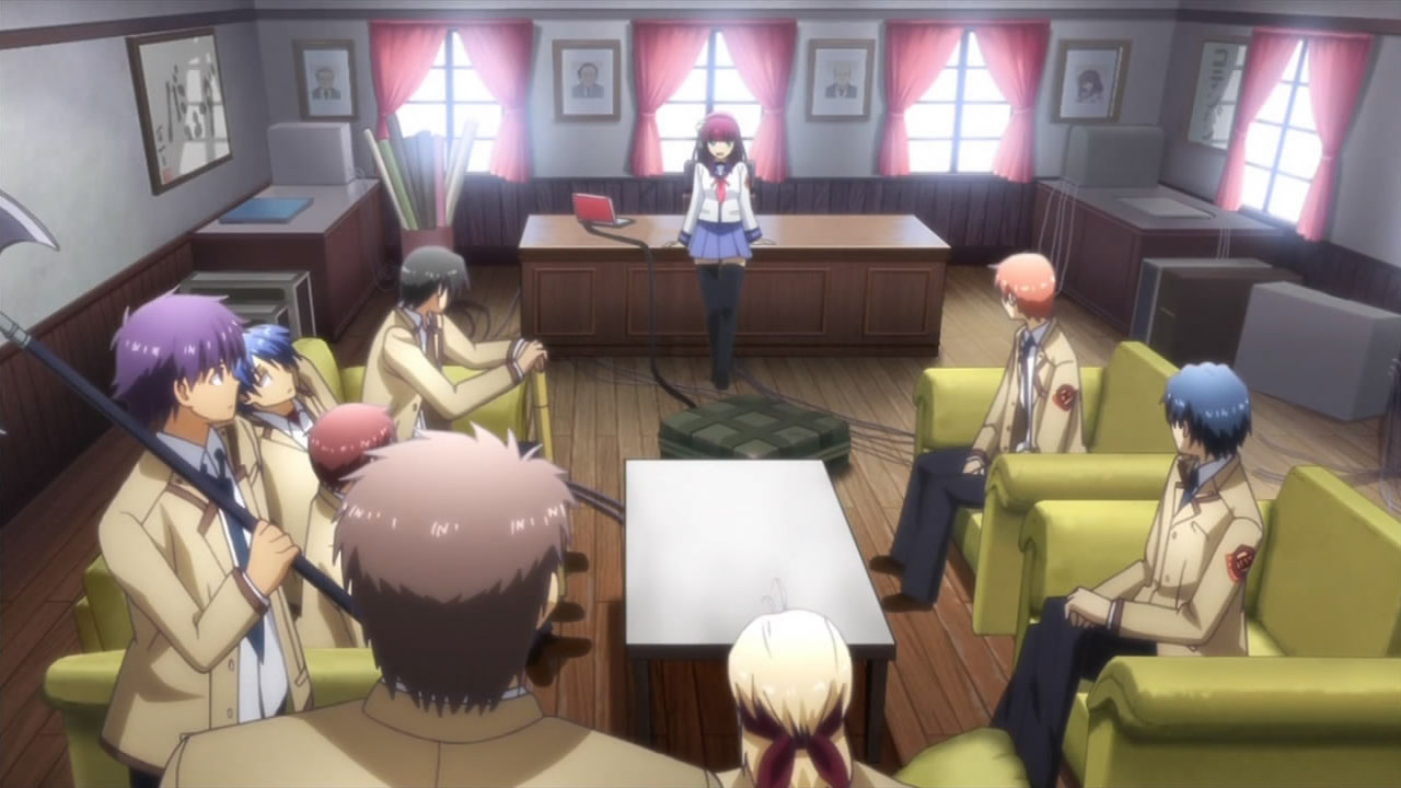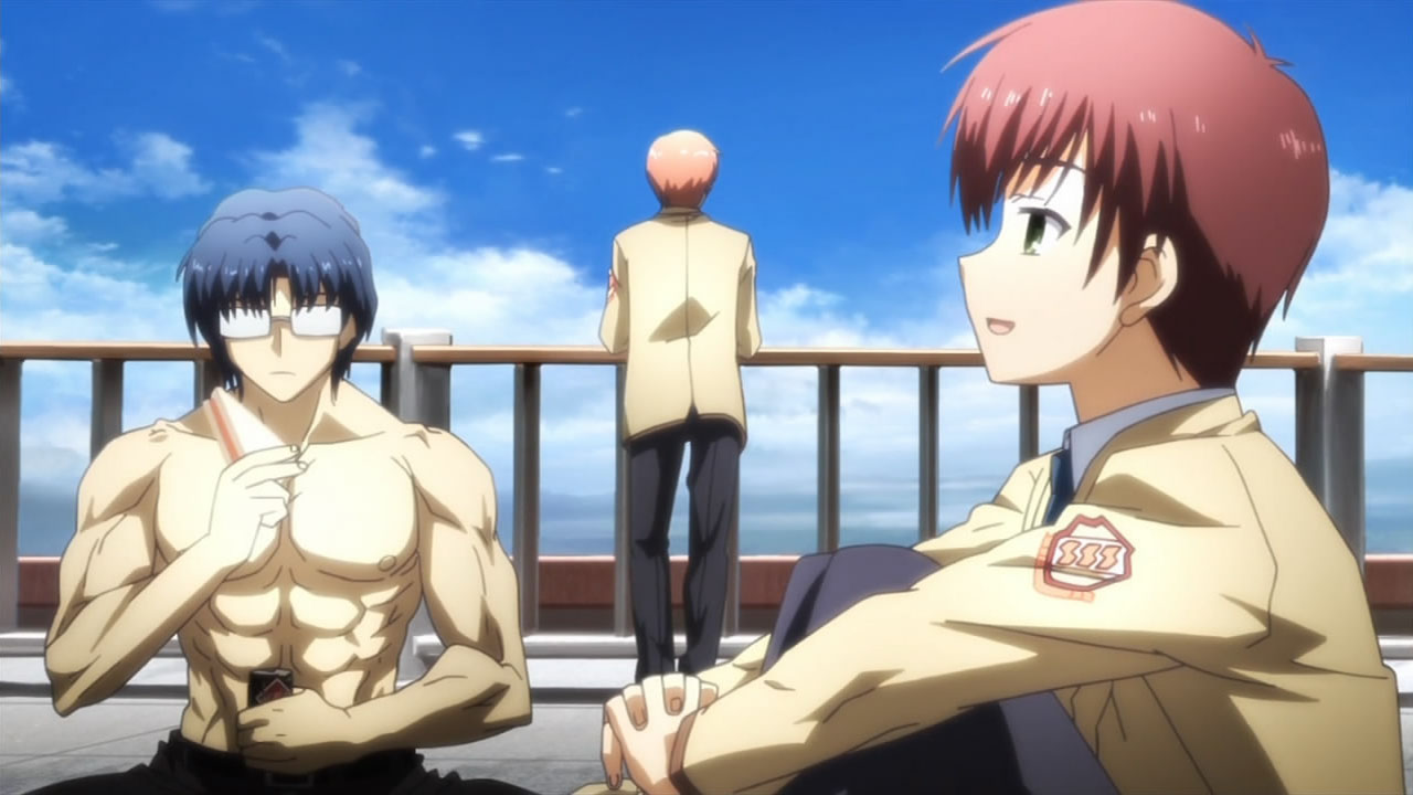 @ Liberta: Maybe because they’re caught by surprise, not to mention being grossly outnumbered? Nobody dies for real, and even if the SSS managed to slaughter their way out, the Student Council will simply revive, learn that being unarmed against SSS is stupid, and start making their own arms.Still, nice work Haru- err, I mean Yurippe, that is one classic example of Victory Disease. I guess nobody in the SSS is smart enough to think that the new president might attack them before they’re ready? Or do they think that the new guy is weak just because he doesn’t have Protoss-like combat skill? Well whatever it is, they’d better hope that the “detention room” doesn’t have waterboarding equipments.Now that I think about it, does any SSS member besides Yuri have ever tried to talk with Kanade? I mean a long talk though, not the “You’re already dead – (stab)” kind of talk. Oh well, I guess that’ll be Otonashi’s role…