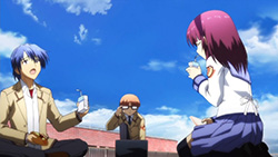 Man, I did laugh out loud at the astronaut comments and flying gigs. I did feel the biggest role in the episode went to Tenshi. She is definitely not the antagonist everyone in the series had made her to be. Seeing how she seemed to care in her scene with Otonashi asking her name, it was truly sad to see her expression at the concert along with the scene where she ate by herself. Right now, whatever will happen, Tachibana Kanade is becoming one of my favorite characters in the series (Even though I have a feeling she might return to be the main antagonist sooner or later). Did anyone notice how she tried to walk away only to be pushed back during the concert? Right at that moment, I would have rushed to push those guys out of her way! >.<