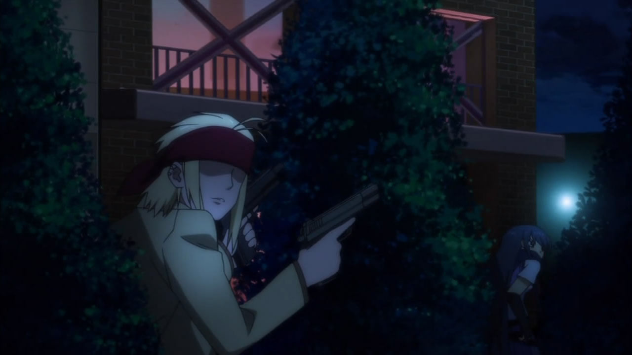 Seeing Tenshi sad makes me sad. Seeing Hinata getting tortured however is priceless! BTW, anyone think that the G3 rifle at the end had a longer barrel?