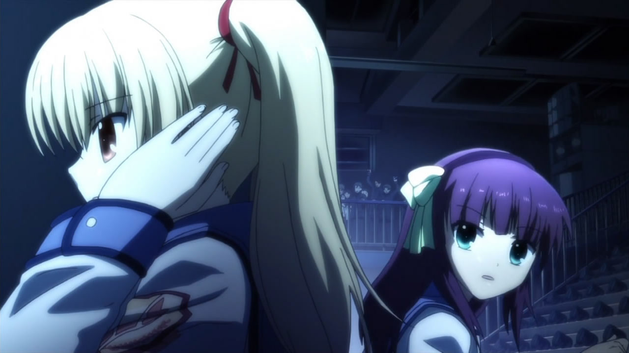 As much sympathy that I feel for Tenshi, everyone needs to remember the situation that the original members would have had to be in when they made her an enemy. Effectively, to that world, disappearing is death (again). If you suddenly woke up in a strange world, knowing that you had died (as the majority of the cast does) then found this student council president deliberately attempting to make your new found friends disappear, would you take kindly to it?It’s a case of a fight of noble causes. Yuri is fighting against the unfair lives that the ones around her and herself had to go through before they came there and Tenshi was attempting to provide a good role model for the school and fulfill her duties as class president.I get this feeling we will be seeing more and more sad notes as this anime continues.