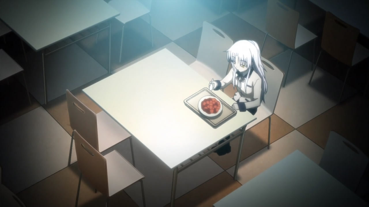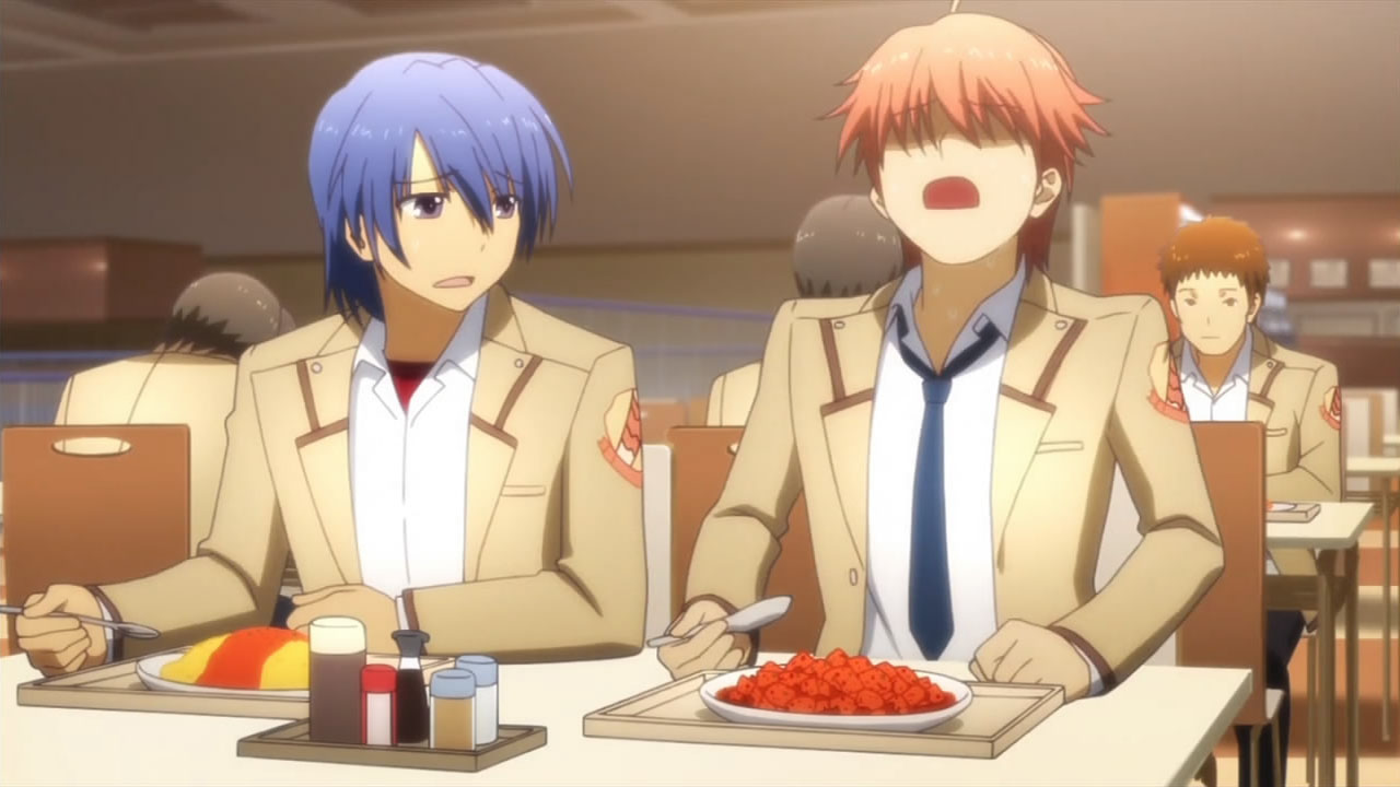 The most eye-opening part of this episode though was the eventual dismissal of Tenshi as the student council president thanks to Yuri’s stupid prankster-like operation. Having lost the respect of the NPC students and the teachers for “failing” all her exams, Tenshi actually looked visually depressed when she went to buy a meal ticket for her favorite dish, mapo tofu, which was heartlessly snatched away from her as well. Seeing as she was being completely non-resistant to SSS’ operation at that point, I’m glad Otonashi took notice of that and they didn’t attack her. Still, her meal ticket ended up in Otonashi’s hands at the end, leaving him wondering if they should invite her to be one of their allies after he pictured how lonely she probably is when she eats alone. Watching that scene made me realize that if anyone’s going to be able to reach out to Tenshi, it’d be Otonashi, so I was a bit disappointed when he backed down from the idea.