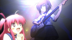 With Yui as the supposed new lead vocalist for Girls Dead Monster and a revamped opening sequence to showcase her abilities, it was pretty amusing to see her strangle herself to death following the performance.