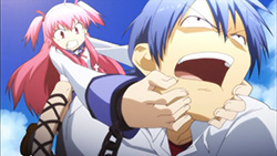Kamiya Hiroshi is reunited with Saitou Chiwa in another SHAFT production since Bakemonogatari, but he's not getting any loving this time as the little orphan girl from Great Britain absolutely destroys Riku in a one-on-one "play fight" and makes him her new underling.