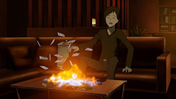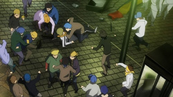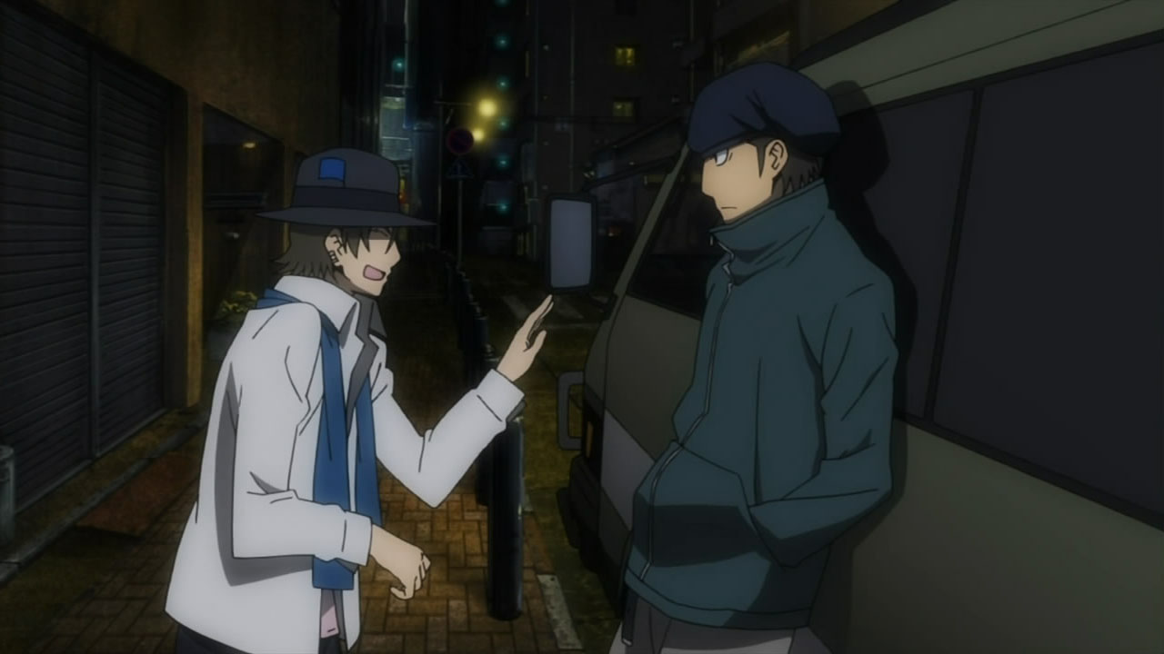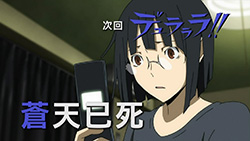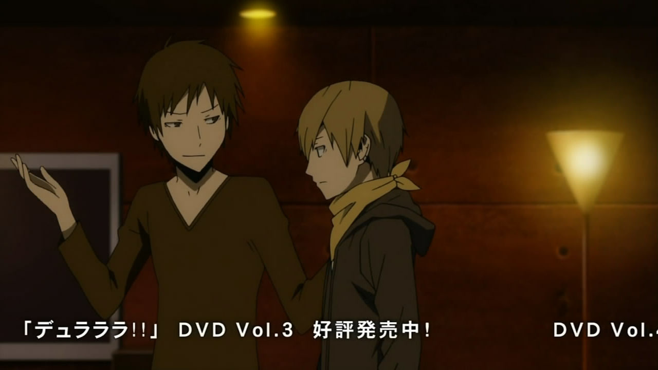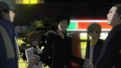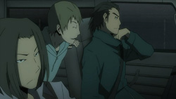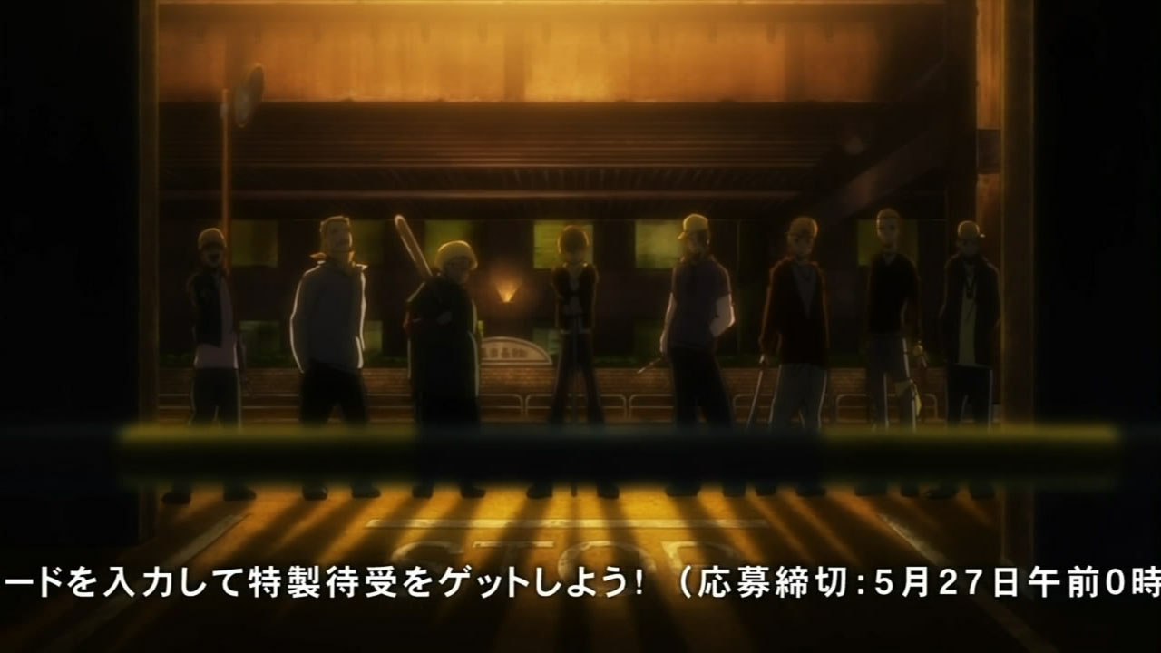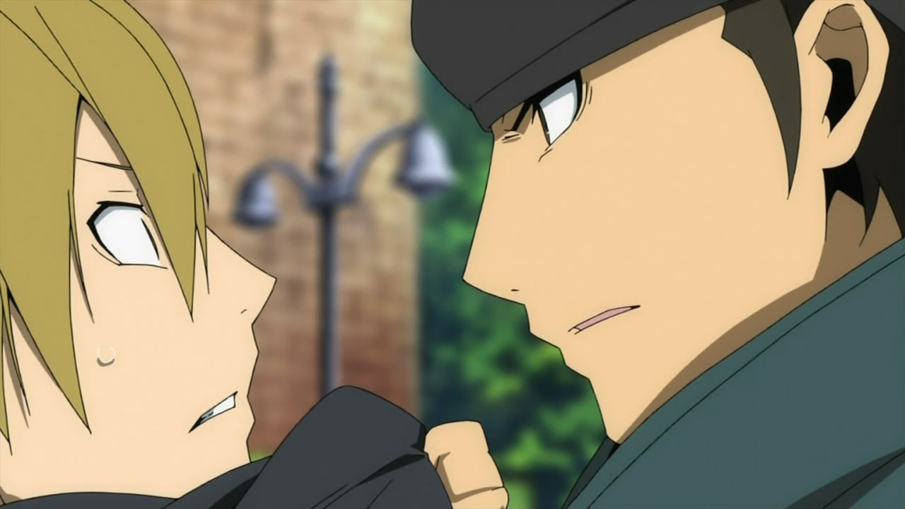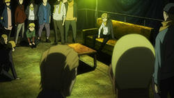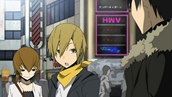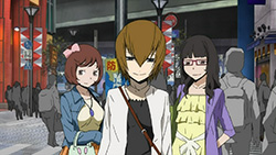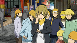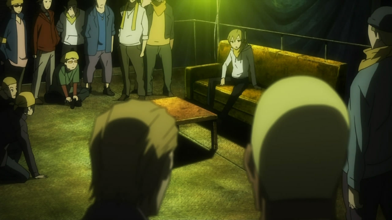 I feel really bad for Masaomi. Being dragged back into the gang war after he finally quit it is pretty sad. Saki kind of creeps me out but she’s not as bad as Mika or Haruna.Actually, does everyone from Kadota’s group know that he was the Yellow Scarves’ leader? Because I remember Erika saying in Russia Sushi back in episode 5 how their boss supposedly left the scene, like she didn’t know who it was.I’m glad Masaomi and Kadota’s group were friends later, though.I love how Baccano! was playing randomly on the screen, too. Although it was a part that might spoil things for those who haven’t watched Baccano! yet…