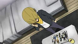 Heh I was really looking forward to seeing what Kida’s girlfriend’s like. Well suffice to say after this episode I really dislike her. The biggest surprise however was that even after she happily tells him he’s her slave and rubs salt into his his wounds, Masaomi still keeps coming back to her- guess he must be an M.I’m really wondering now exactly whom Izaya considers to be the joker- he already placed Shizuo and Celty as king and queen so initially I thought it might be Mikado, since he was full of surprises before, but now I wonder if it’s actually Shingen who seems to be capable of figuring Izaya to a degree.