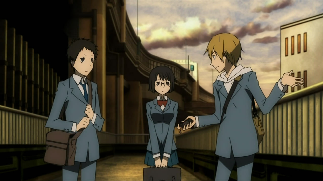 My goodness Saki is a cutie pie. Aside from her unsettling religious-like adoration for Izaya, I have no how Masaomi can tell her that he’s interested in Anri now — and straight to her face no less. Clearly, Saki knows him way better than what he’s actually saying though, so I found it rather cute when she said he can go around with however many girls he wants because she knows he’ll come back to her in the end. At the same time, it almost sounded like she was on the verge of being one of those stalker girls, albeit in a much calmer “Hi, I talk to myself” demeanor. Still, seeing how she grew fond of Masaomi on her own — despite how Izaya planted her as a seed of sorts to realize his plans — I have to say a girl who calmly confesses her feeling the way she did is so adorable. Gah, I even like the way she carries herself in her girlish postures, in what I see as a perfect balance of timidness and outgoingness. She’s definitely girlfriend material and someone I really hope Masaomi does end up protecting in the end.