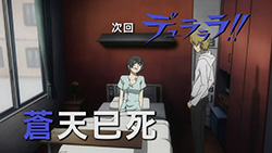 Wow first time I have watched the episode before you post about it Divine.I find Saki a bit scary she smiles too much I wouldn’t date her.lol I think she would make a good Izaya stalker.Yumasaki is crazy ans Dotachin without his hat is cool.There was the Claire plus Chane on the screen at a time too.