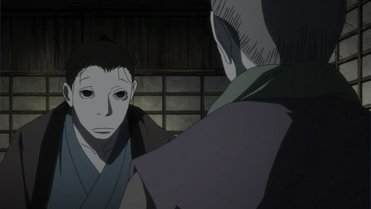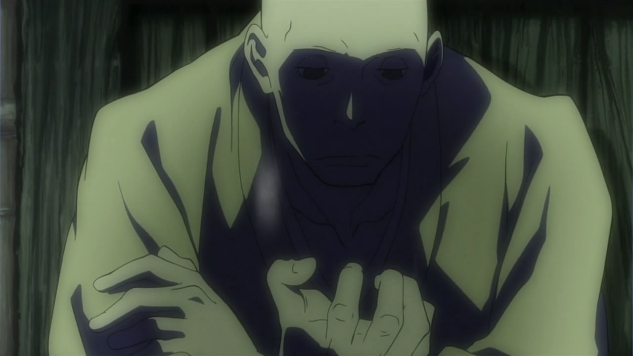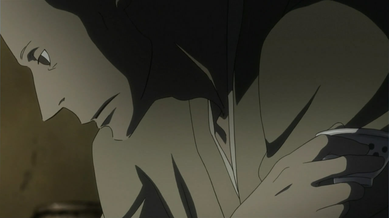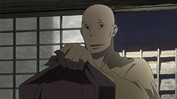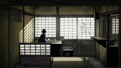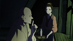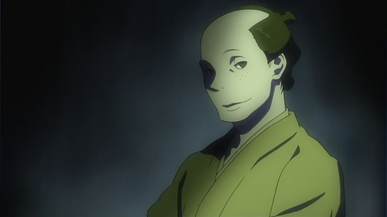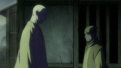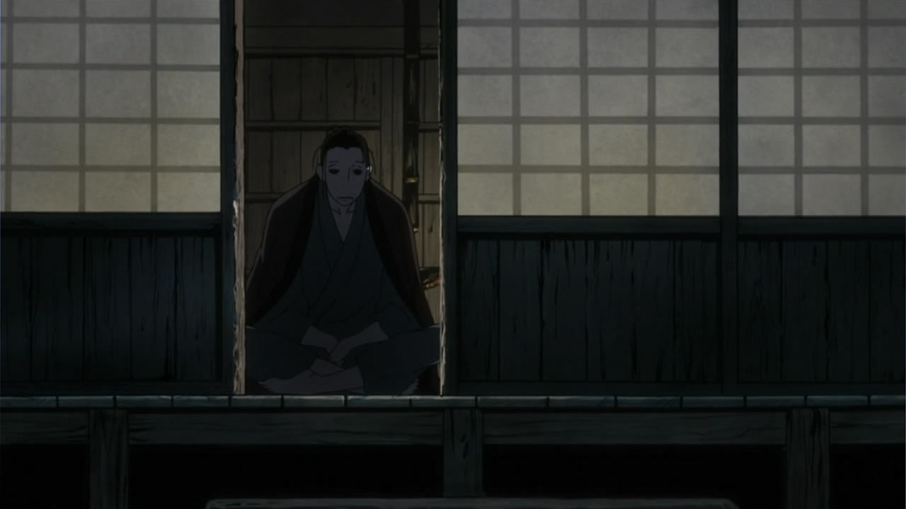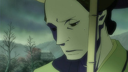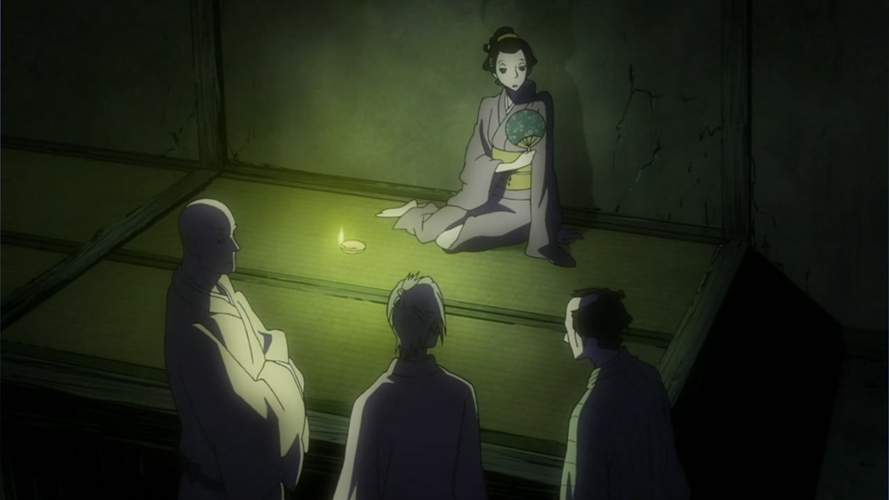 This series reminds me a lot of Mushishi as well. Not just because of the obvious similarity between the lead characters, but because of the similarity in the pacing, backgrounds and architecture. It’s kind of a shame that we remain in a few recurring settings because the art style lends itself to portraying the wilderness and other environments. Unlike Mushishi, this series seems to be a bit greyed out; even in non-flashback scenes, the red hues are dimmed and dawn/dusk shots are limited.Yaichi’s flashbacks are progressing normally while the backstory of the group is moving in reverse chronological order. So they’re saving Otake’s story and the missing pieces of Yaichi’s history for the end? I like the pacing in this series, but it doesn’t lend itself to finding a suitable end point. I’m hoping they don’t plan on adding some melodrama to force Masa to join or leave, and rather let his decision come naturally.