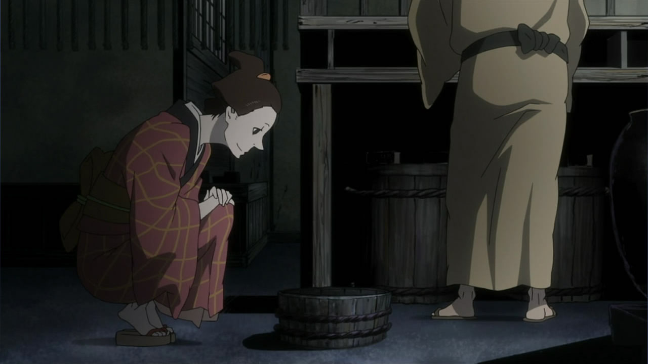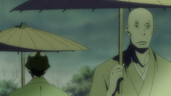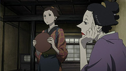 I don’t know if it’s just the subtle way this series shifts between the present and flashbacks or if I’m just used to it being more obvious, but those transitions are evidently a key part of the screenplay that I should be taking better notice of. As some people kindly pointed out to me last time, the lead-in to the kidnapping of a shogunate retainer’s son was the first venture of the soon-to-be-created House of Five Leaves. Interestingly enough, it all started out for Okinu’s sake and later transpired into the group’s regular money-making scheme. That said, the history behind their gang turned out to be so whimsical and spur of the moment-like that it sort of goes to show how little everyone really knows about Yaichi. I still get the feeling that Otake knows the most, but for now it seems like the vast majority of our protagonists will be in for a bit of a surprise down the stretch.