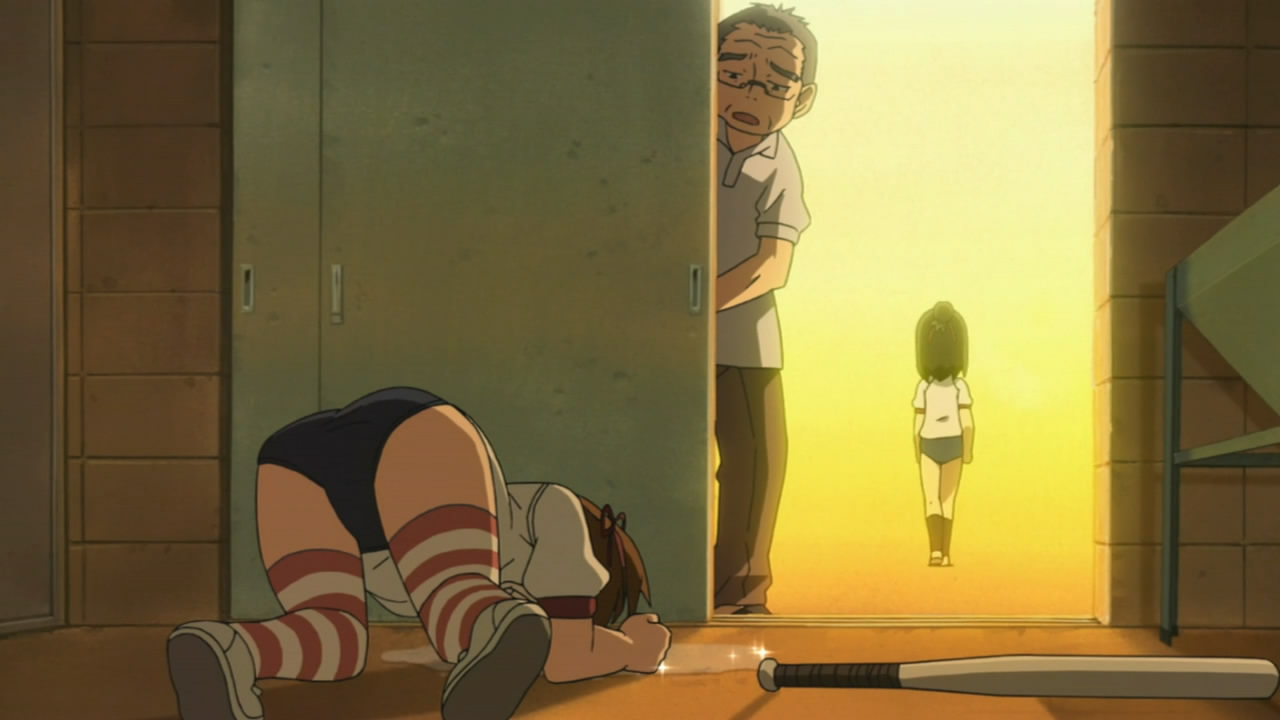All it took was a game of cops and robbers to establish that Mitsuba can ditch her conscience in a heartbeat. It wasn’t all that surprising seeing as she is a sadist and all, but Hitoha was able to trick her into desperately trying to get out of the storage room by feigning illness, plus got her to weep a pool of tears for buying the act — neither of which I’d expect from someone who doesn’t care at some level. That’s only the nicer part of me speaking though, because I absolutely loved seeing Mitsuba get burned in return for selling out Hitoha earlier on. In all honesty, it probably wasn’t enough to make up for being thrown face first into the ground, but the pool of tears was a good indication of emotional damage at least. Incidentally, being victimized turned out to be a theme of sorts this episode, and not a bad one either with Hitoha at the center of most of it. The misunderstanding over Chikubi loving Futaba more prompted a pretty good misunderstanding on Satoshi’s part too. It’s a bit of a shame that the latter didn’t get much further than that, but I really have no idea how Satoshi would have dug himself out of that whole with the principal and other teachers if it did. It was odd, but I was actually relieved that the principal believed his story right away and we didn’t have to venture down a path of trying to clear up the misunderstanding over getting Hitoha to smell his feet.
