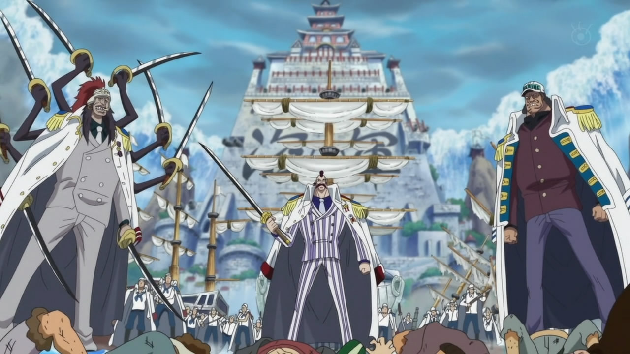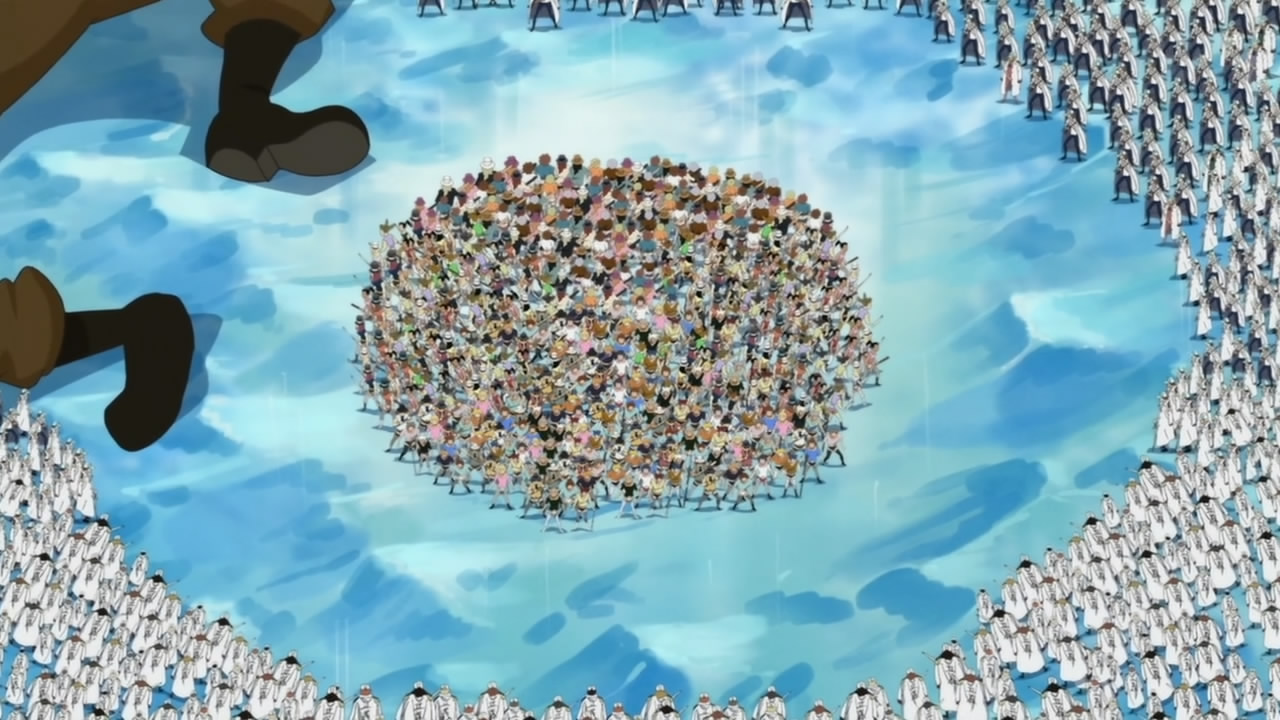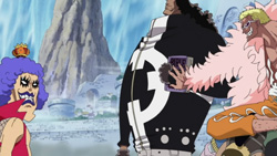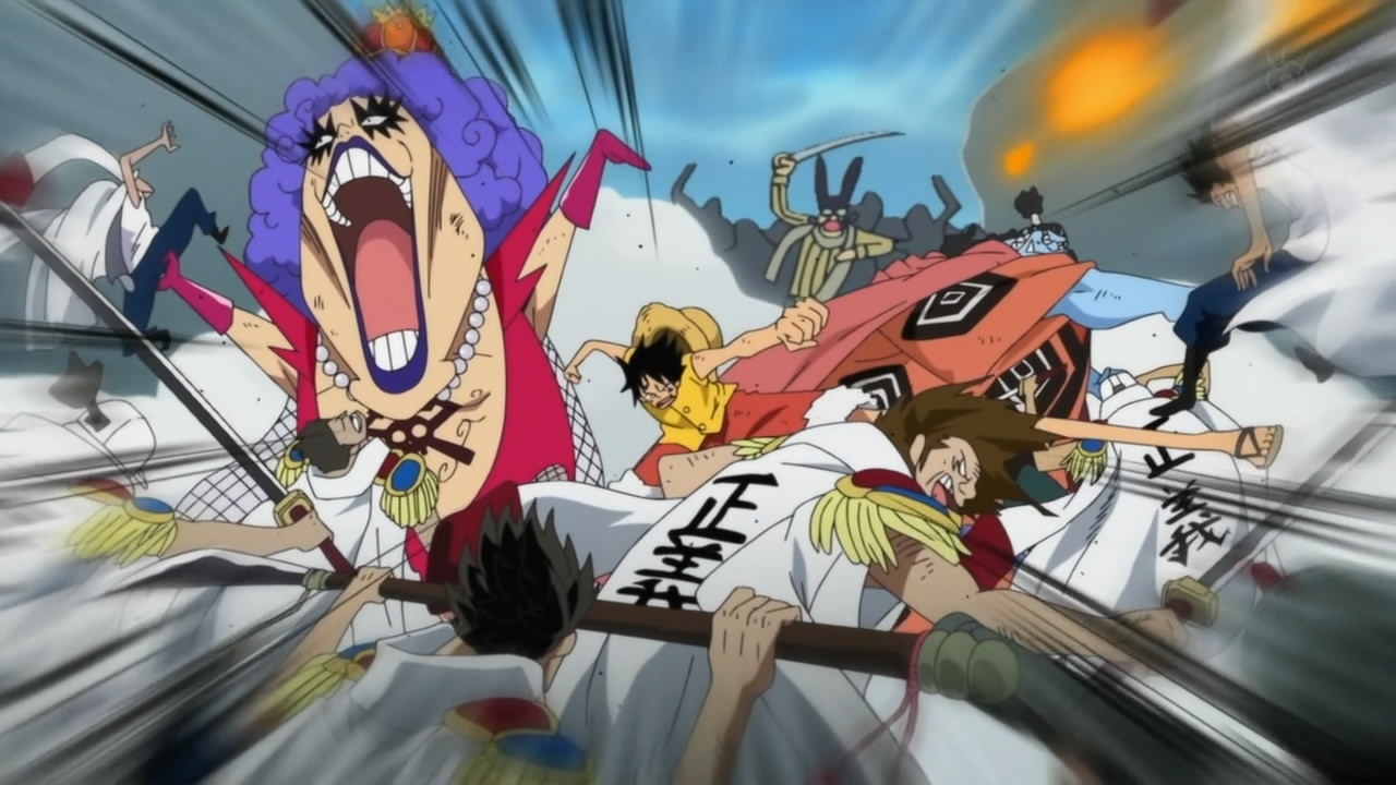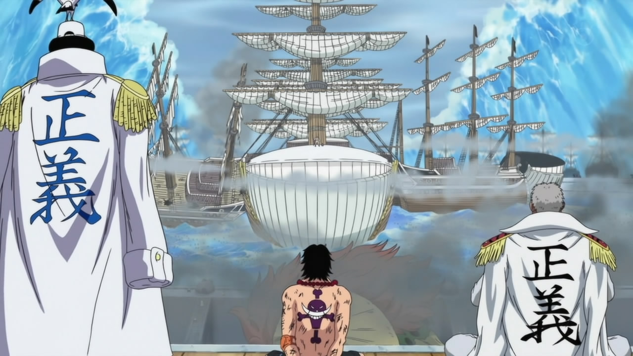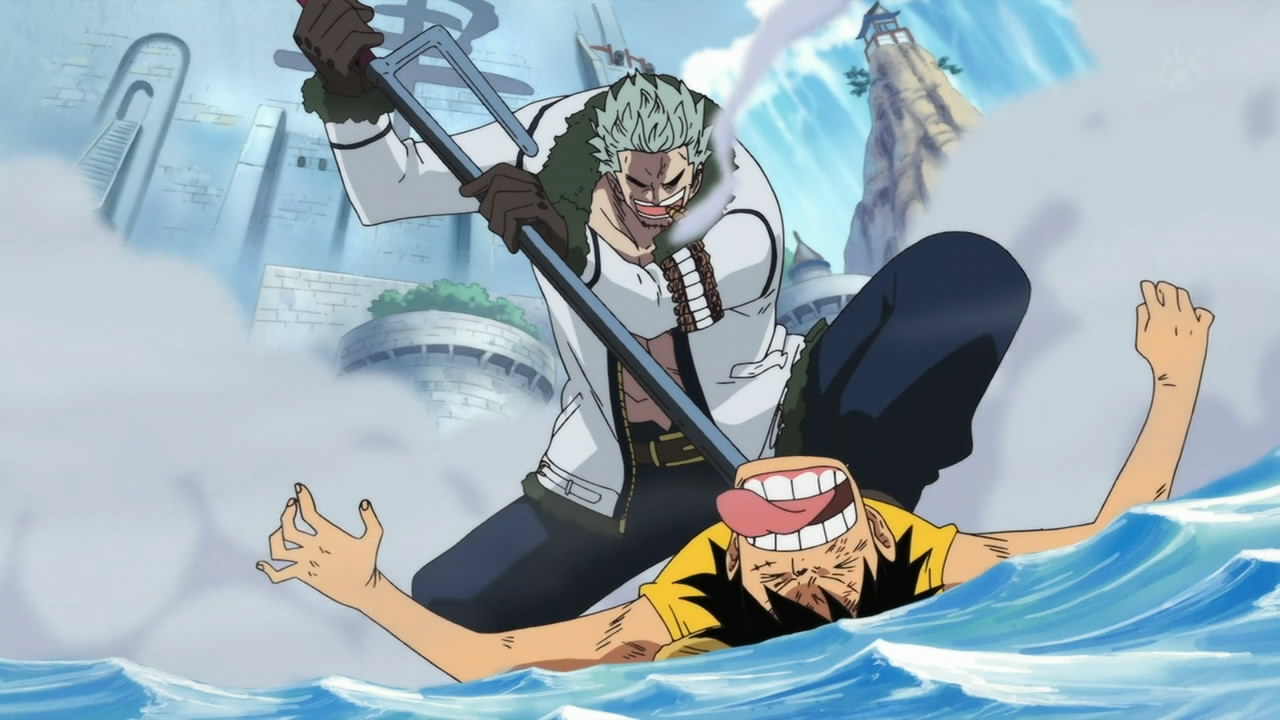 While Jinbei’s fight was a little lackluster, Luffy’s was great, and having Hancock come in to the rescue was even better. That’s the thing with how the war was written; Oda made it so there’s always a refreshing moment, something slightly unexpected, while also being able to include every important character on the battlefield. Something like this shouldn’t surprise me, but with all the sub-par story writing out there, it’s hard not to be. While there was never a stale moment in the manga, the anime makes it a lot harder to say that, with all the long “war movement” scenes aforementioned.