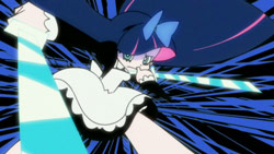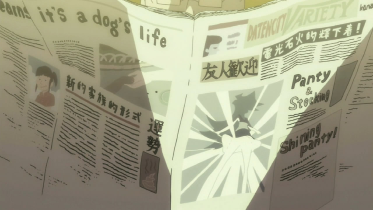 For the people that thought this part was slow, it’s most likely because this kind of storytelling is usually aimed towards adults. But oh look, Panty and Stocking is an adult show. It’s exactly the same reason shows like Mad Men couldn’t possibly appeal to kids. To the inexperienced teenager or younger, trapped in their bubble of safety and infallible fantasies (But I don’t blame them, because that’s the best thing about youth), how could they possibly understand the troubles of an old man stuck in a shitty job, taking shit from people, just so he can hold onto the job and provide for his family? These values completely fly over their heads, and the only thing they’re feeling is “why the hell isn’t this going anywhere?” And perhaps this was not only a statement for Kon (or hell, a revealing take on the stressful cycle of businessmen in Japan), but more of a display of the potential in the fantastic medium that is anime, and when at its prime, can truly be considered an art form. Gainax also just likes to show off.