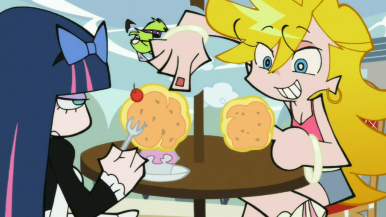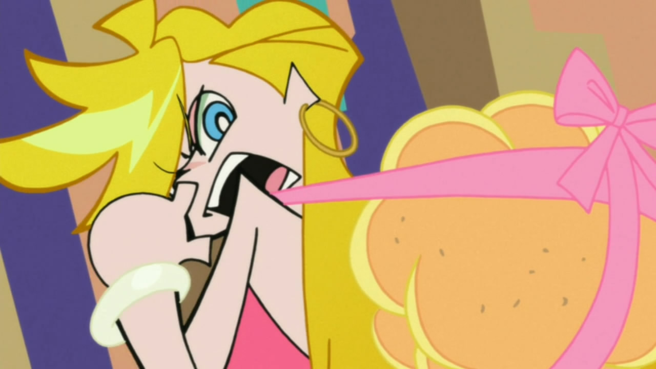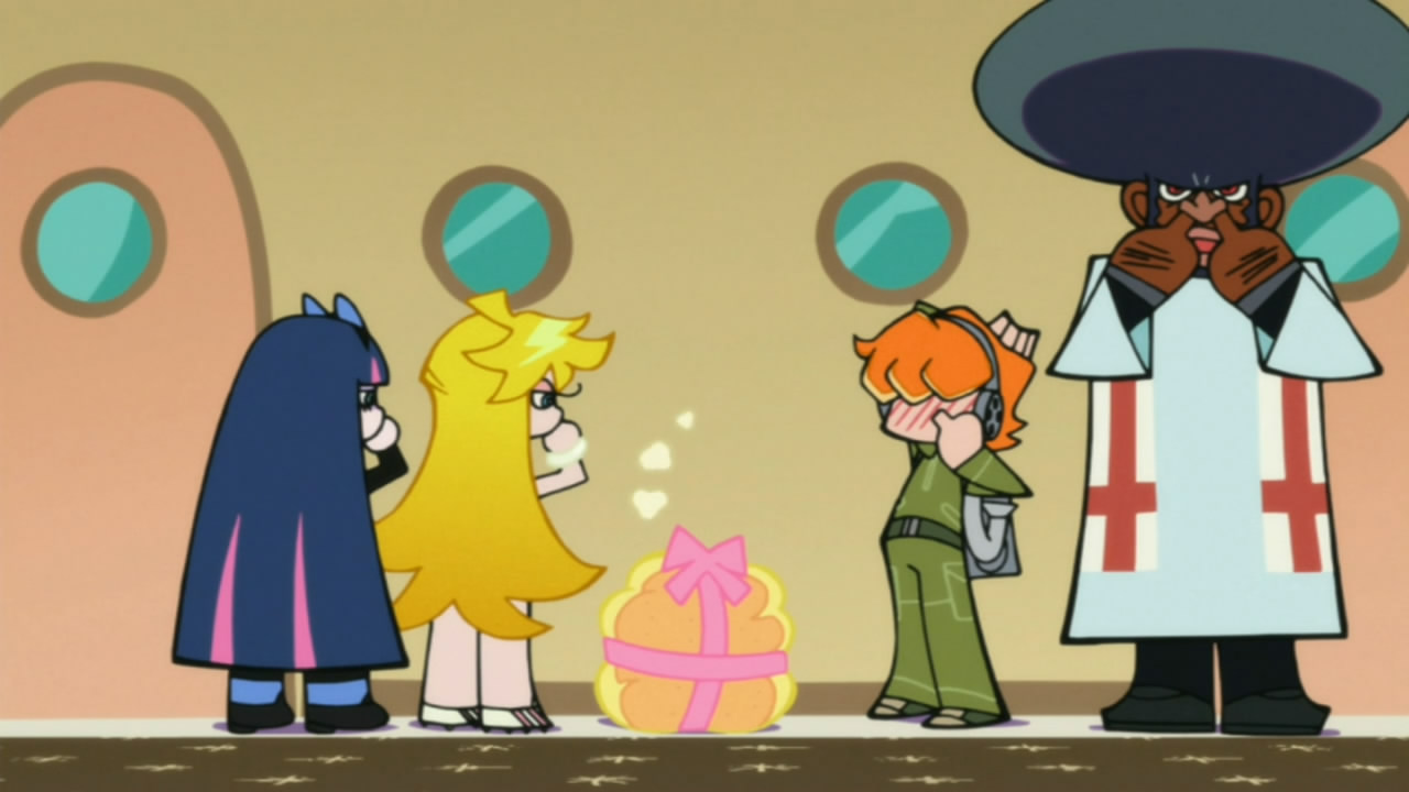 There’s a whole mess of confusion within me from watching this half. Is it the urge to be disgusted from an episode devoted to boogers? That said boogers are so abundant, and shooting everywhere, or that they look exactly like Stocking’s sweets? How about that Stocking eats said sweets, but soon eats those boogers too, but the cognitive dissonance of seeing it still as a sweet, but knowing it’s a booger just rips the mind apart?