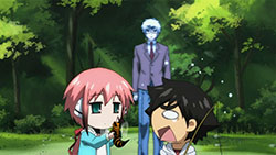 Nymph is looking as cute and possibly cuter every episode with her various set of clothes. Meanwhile, I thought it was pretty cute seeing Ikaros’ concern and perhaps even jealousy when Tomoki spends a lot of his time towards his new brother compared to her. Aww I thought it was very cute. Astrea is as always pretty dumb and funny. Sohara is always chopping things off, while Eishirou really took the highlight and went to investigate and declare war on the master of the sky (up yours, you sadistic bastard!).
