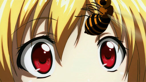Eishirou had me clapping when he gave it to the Synapse’s master. HA! Take that you sucker!but oh man, I would have love to run around with Ikaros until she caught a suzumebachi! I mean, how the heck do you catch a live one and keep it! She got me freaked out and poor Astraea getting the sting right in her forehead, YIKES!