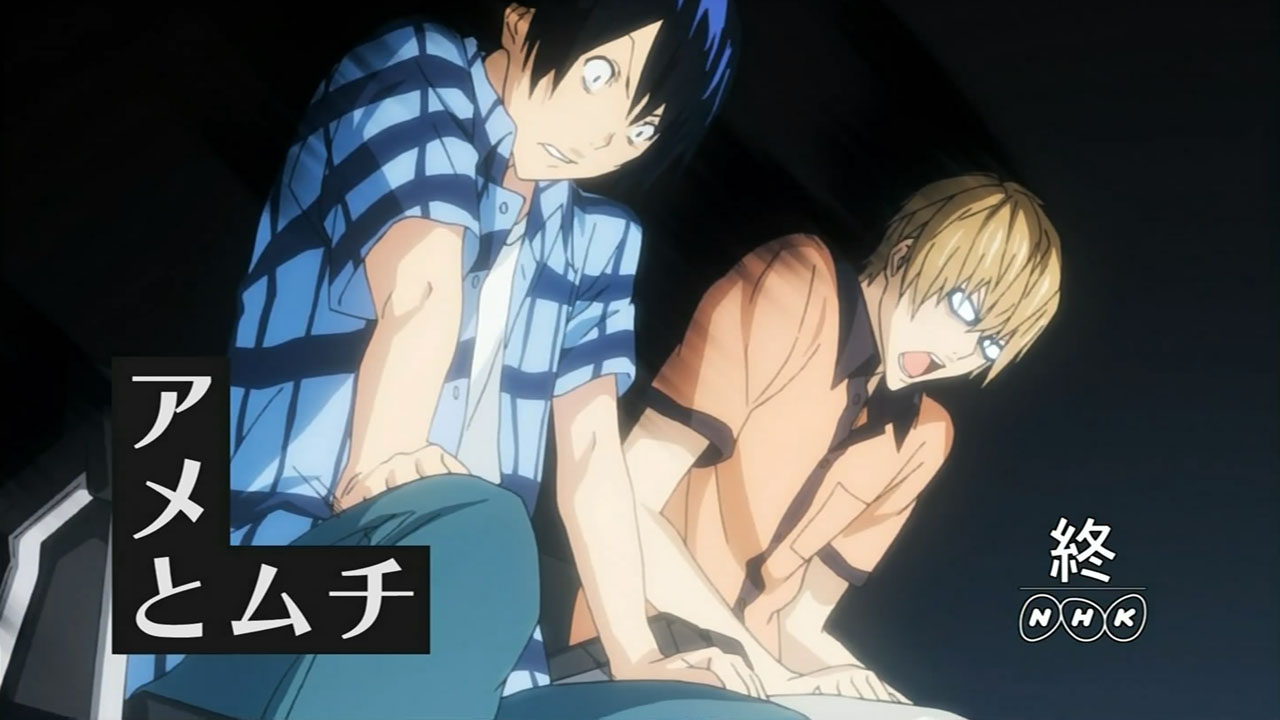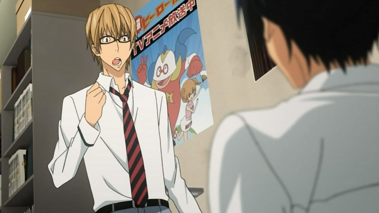 Haven’t really had the need to refer to them so far, and I haven’t managed to remember their first or last names, hence in my mind I think of the two as the blue-haired guy and the blond guy with glasses.I have gotten to love Bakuman myself, the fusion moment really bumped up the coolness factor (and regurgitated my memories of DBZ). Considering the fact that it’s this good after only 5 episodes it’s hard to imagine to what lengths the story might go; also, the fear that it might get bad later on is starting to increase. But from what I’ve gathered the manga is good (great?) so the anime /should/ turn out the same right?By the looks of it, they aren’t in for a warm welcome at Shonen Jack. Should prove to be interesting, though I can’t help but feel sorry for them after all the effort they put in. That Eiji kid must be some sort of a freak to be that good on his own…