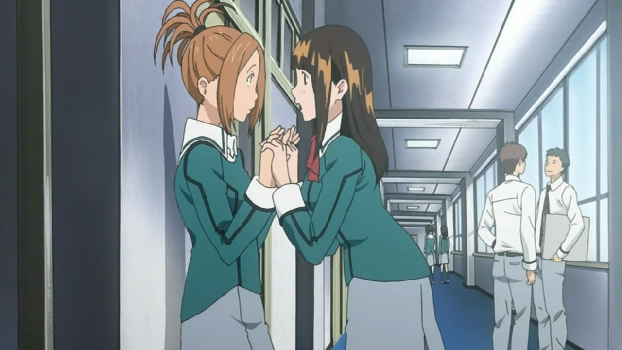 On the relationship forefront it looks like Takagi will finally get some action. Whether its wanted or not, it looks like he doesnt have a choice. By not thinking before he spoke to Miyoshia Kaya (Yahagi Sayuri), Azukis best friend, it looks like Takagi is going to end up in an awkward situation whenever they get close to each other. Somehow Takagi manages to phrase his words to sound like he wanted to talk to Kaya. Leading Kaya to think that he’s hitting on her. With this kind of behavior coming from Takagi, it really surprised me. Id expect him to be better than Moritaka with relationship type things, not the other way around. Then again, its hard to tell if Takagi actually likes her or not. Especially when you add in the fact that Kaya competed nationally in some sort form of martial arts – maybe Takagi will “begin” to like her. Moritaka on the other hand still does NOT have Azukis phone number. I refuse to accept any of his deluded fantasies until he mans up and actually gets Azuki’s number. Especially when he shows such skill in understanding how relationships work, except when it comes to his own.