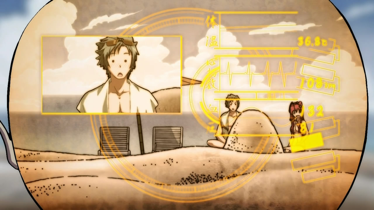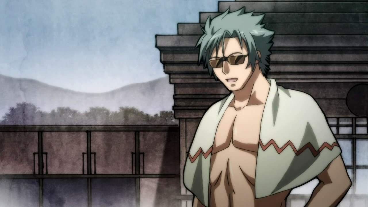 It wasn’t all about Kanetsugu however, as the scene with Yukimura and Sen fighting over who’s standing in front when screaming out Matabee and Hanzou’s names had me laughing a lot more than I thought I would. It was just so silly seeing two master samurais’ bickering reach that level before a huge “shikigami” that had possessed Kanetsugu, yet very befitting considering everything that happened prior. This includes how the two of them had already knocked heads over the whole swimsuits and Yukimura managed to pull off a crushing defeat of Sen with the power of a pure white school swimsuit (which she happens to be wearing all the time). Fearsome stuff. In retrospect, this entire episode had comedic moments that just worked from start to finish, which goes all the way back to when Sen and Muneakira’s tried to sneak out to the Tokugawa vacation house to check out the Shogun’s servers for information about her brother and the missing students. Yes, amazingly enough, this did start off on a story-related note revolving around how those students are descendants of master samurai before things got fairly sidetracked, for which I’m appreciative of since it means the plot — no matter how simplistic — is still moving forward during all these silly antics. This episode also marked the reappearance of the other Jubei who we haven’t seen in a while, and also seemed to suggest that Kanetsugu will join their ranks after having been deemed by Yoshihiko as expendable. I gather it’s no secret now that I love the humor that Kanetsugu brings, so the prospect of having her around all the time is something I’m looking forward to. Also, if it wasn’t apparent already, this series has quickly become one of my favorites this season, simply because I never go into an episode expecting anything yet always seem to come out thoroughly entertained.